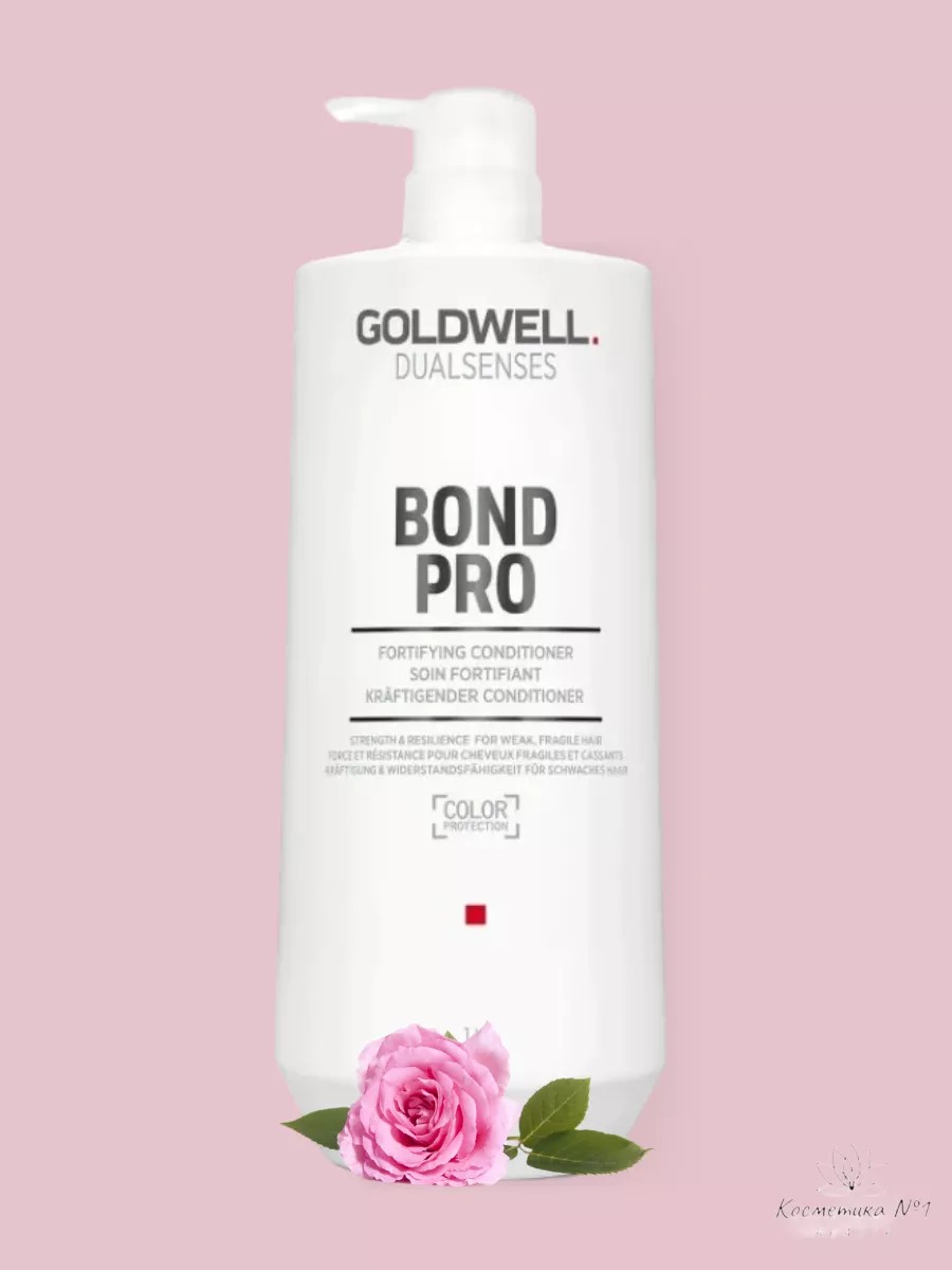 Кондиционер укрепляющий Goldwell Dualsenses Bond Pro - находка для обладательниц сухих, ослабленных, поврежденных прядей, которые требуют немедленного восстановления. Средство разработано на основе комплекса micro PROtec, благодаря которому обеспечивается эффективная комплексная забота и питание, активизация обменных процессов в клетках. Бьюти-продукт регулирует гидробаланс, стимулирует естественную выработку коллагена и эластина, защищает от выпадения, дарит локонам эластичность, упругость, облегчает расчесывание и укладку. Имеет густую насыщенную текстуру и приятный аромат. При регулярном позволяет добиться ощутимого и визуально заметного результата. Поставляется в стильном флаконе с дозатором для экономного расхода. Укрепляющий кондиционер Goldwell Bond Pro предназначен для питания и укрепления ломких, поврежденных волос, придавая волосам здоровый вид и ощущение свежести. Экспертный комплекс укрепляет волосы изнутри, образуя новые ионные и водородные связи. Эти инновационные технологии ухода позволяют ухаживать за волосами, поддерживая их естественную структуру. Обогащающий кондиционер содержит соевый белок, который обладает восстанавливающими свойствами, помогает укрепить волосы и придать волосам здоровый вид. Уходовое средство для восстановления подходит для всех типов волос: для окрашенных волос, для тонких и сухих и поврежденных. Уход за волосами – важная часть жизни каждой женщины, ведь ритм работы и стрессы вынуждают усиленно заботиться о защите волос. Предназначено для женщин и мужчин, которые хотят выглядеть стильно и ухоженно, может стать прекрасным подарком маме, подруге, любимой на день рождения, 8 марта, новый год. Уникальные свойства кондиционера смогут удовлетворить самые высокие требования и ожидания в области ухода за волосами. Рекомендуется использовать данный кондиционер регулярно, а для достижения максимального эффекта используйте совместно с шампунем и маской для волос Goldwell DualSenses Bond Pro.