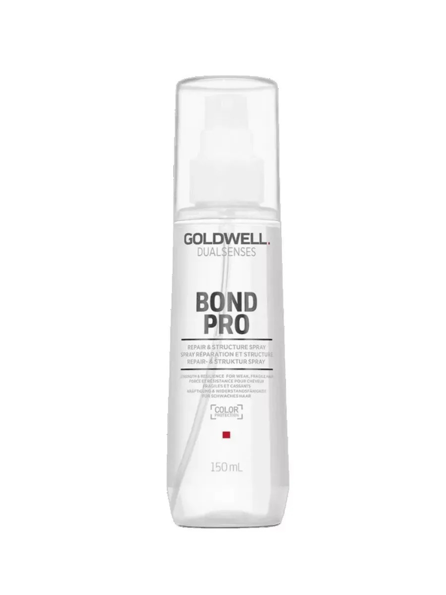 Goldwell Dualsenses Bond Pro & Structure Spray - Nourish and care for damaged hair with a restorative and structuring spray. Goldwell BondPro, a spray containing the microPROtec complex, strengthens hair from the inside, forming new ionic and hydrogen bonds. These innovative technologies allow you to care for your hair while maintaining its natural structure. Suitable for fine, brittle hair, the formula is designed to protect the hair cuticle while strengthening it from environmental factors. This leave-in spray makes styling easier and also provides thermal protection. How to use: Shake well and apply to towel-dried hair. Do not rinse.