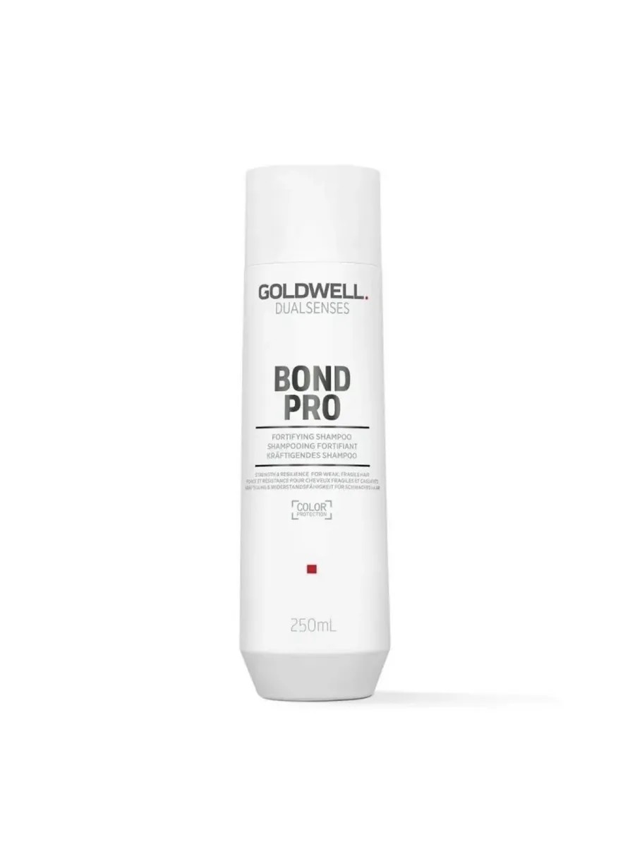 Goldwell Dualsenses Bond Pro, a strengthening shampoo for weakened, brittle hair, instantly nourishes and strengthens the hair structure. Exclusive FadeStopFormula technology minimizes color fading with each use, while the patented Goldwell MicroPROtec Complex quickly and evenly delivers essential care ingredients for results you can see and feel immediately after use. This product strengthens and restructures hair from root to tip, proving that strong hair is, without a doubt, beautiful. With Dualsenses Bond Pro, you'll eliminate breakage, leaving you with healthier, stronger, more resilient, and more beautiful locks.