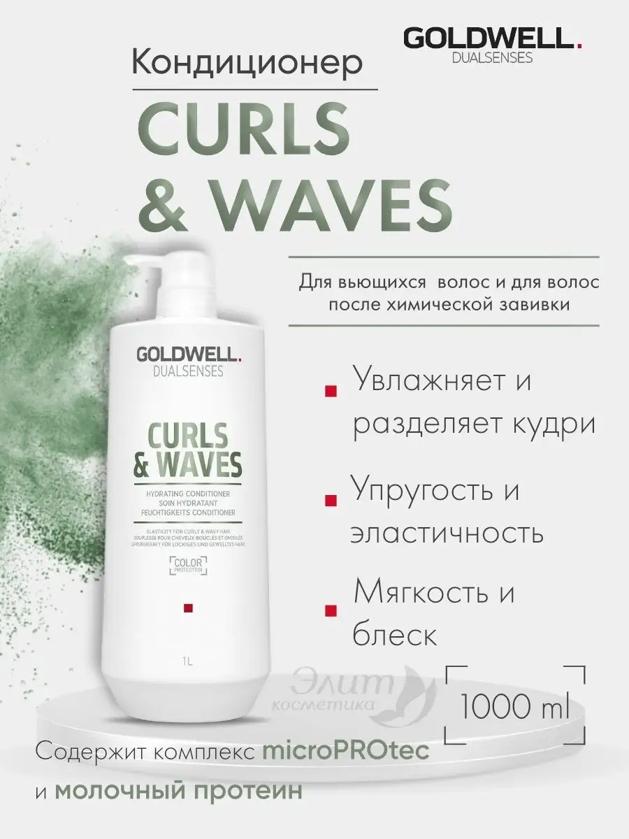 Moisturizing conditioner for naturally curly and permed hair from Goldwell (Germany). Contains the proprietary microPROtec complex, which ensures rapid delivery of nourishing ingredients and protects color from fading, as well as milk proteins, which balance moisture, impart softness and hydration.