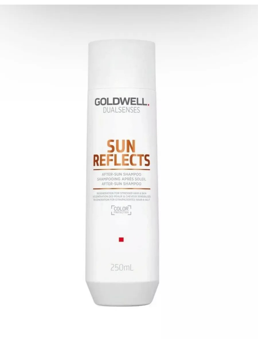 Goldwell Dualsenses SUN REFLECTS Shampoo 250 ml - After-sun shampoo 250 ml. Goldwell after-sun shampoo for hair and skin. Provides gentle, deep cleansing and essential care for hair and skin after sun exposure. Effectively removes chlorine and seawater residue. Instantly and noticeably restores hair. Contains the SunCare Complex with passion fruit oil and UVA and UVB filters, as well as instant-action microfluidic technology. Goldwell after-sun shampoo is designed for all hair types. Recommended for regular use before going outside in hot weather. What's special about Goldwell after-sun shampoo: - The formula is made with natural plant extracts. It also contains passion fruit essential oil, which saturates the curls with useful minerals; - The product protects strands from the negative effects of UVA and UVB rays; - Hair becomes soft, smooth and silky; - In addition to reliable protection from sun rays, this shampoo also protects from salty sea water. Directions for use: - Apply shampoo to damp hair; - Massage until lather forms; - Rinse thoroughly.