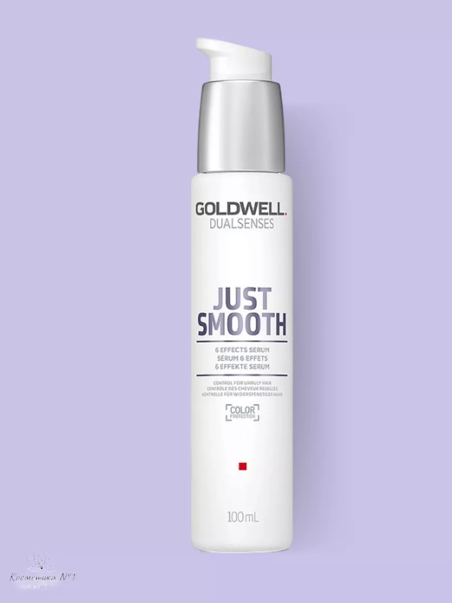 Сыворотка восстанавливающая 6-кратного действия для разглаживания непослушных волос Goldwell Just Smooth 6 Effects - профессиональная разработка для восстановления и бережного ухода за истощенными и сухими прядями. Решает одновременно несколько задач – защищает, восстанавливает, фиксирует цвет, облегчает расчесывание. Сбалансированная формула на основе комплекса растительных экстрактов, витаминов и микроэлементов насыщает пряди полезными веществами, делает их упругими, объемными, восстанавливает структуру, обеспечивает влагой, убирает статику, создает вокруг волоска невидимую пленку. Тонизирует и освежает, делает мягкими и ухоженными. Сыворотка Голдвелл обеспечивает несмываемый уход за волосами, имеет гелевую консистенцию. Она проникает вглубь каждого волоса, восстанавливая его структуру. Уникальная формула содержит множество натуральных полезных микроэлементов, которые необходимы для здоровья, ослепительного блеска и эластичности волос. Подходит для тонких, пушащихся волос, формула разработана для защиты кутикулы волос и одновременно укрепляет ее от воздействия факторов окружающей среды. Несмываемый уход облегчает укладку и расчесывание. Результат применения сыворотки - красивые и ухоженные волосы. Комфортная консистенция геля легко наносится и не растекается по волосам. Это средство для волос, которое используется парикмахерами для салонного ухода, а так же подходит для домашнего ежедневного ухода за волосами. Предназначено для женщин и мужчин, которые хотят выглядеть стильно и ухоженно, может стать прекрасным подарком жене, сестре, любимой на день рождения, 8 марта, новый год. Уникальные свойства для волос смогут удовлетворить самые высокие требования и ожидания в области ухода за волосами. Рекомендуется использовать данную сыворотку регулярно, а для достижения максимального эффекта используйте совместно с шампунем и кондиционером для волос Goldwell Just Smooth Taming.