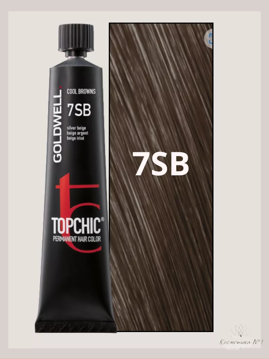 Goldwell Topchic 7SB Professional Hair Dye, Silvery Beige. TOPCHIC is a cult brand for true colorists! Even more effective, precise, and convenient, it offers 100% gray coverage and exceptionally even color from root to tip. Its low-alkaline base ensures a very gentle and caring effect on hair. This permanent cream dye is the only one that provides incredible color retention and richness without damaging hair, as it works physically, not chemically! Topchic hair dye is a unique product that not only allows you to change your hair color but also provides maximum care. Goldwell dyes do not alter the hair structure, but rather saturate it with color, simultaneously repairing damaged areas and giving hair an incomparable shine. The patented formula has a pleasant aroma and strengthens hair! 100% gray coverage; no pre-lightening required, even when dyeing to lighter shades. Exceptionally even results from root to tip! This coloring treatment is suitable for all hair types, including fine, dry, and damaged hair. This hair coloring line, used by hairdressers, is designed for women and men who want to look stylish and well-groomed. It also makes a wonderful gift for mom, girlfriend, partner, or husband for a birthday, March 8th, or New Year's. The unique properties of this permanent cream hair color will satisfy the most demanding hair care needs and expectations. Regular use is recommended for maximum results and long-lasting color. One coloring session ensures a flawless look for 4-6 weeks. The shade on your monitor may differ from the actual color. The color activator is purchased separately.