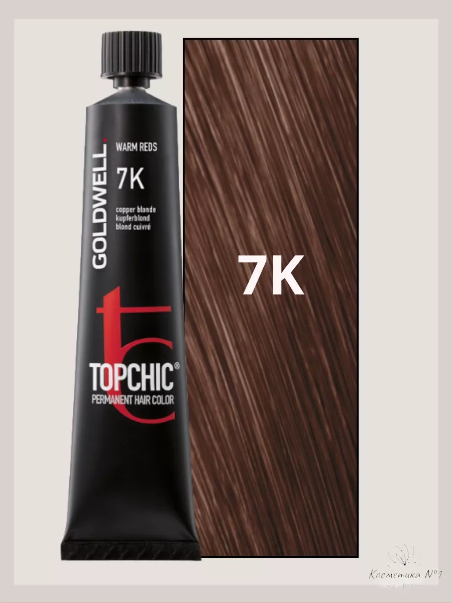 Профессиональная краска для волос Goldwell Topchic 7K медный блондин. TOPCHIC – культовый бренд для настоящих колористов! Еще более эффективный, точный и удобный, 100% закрашивание седины, исключительно ровный цвет от корней до кончиков. Имеет низко щелочную основу, благодаря чему на волосы оказывает очень мягкое щадящее воздействие. Стойкая крем-краска - единственная краска, которая обеспечивает невероятную стойкость и сочность цвета, не повреждая волосы, поскольку действует не на химическом, а на физическом уровне! Краска для волос Topchic - это уникальное средство, которое не только позволяет изменить цвет волос, но и обеспечивает максимальный уход за ними. Красители Goldwell не меняют структуру волос, а лишь насыщают их цветом, одновременно восстанавливая поврежденные участки и придавая волосам ни с чем не сравнимый блеск. Запатентованный состав обладает приятным ароматом и укрепляет волосы! 100% закрашивания седины, краска не требует предварительного осветления даже при окрашивании в более светлые тона. Исключительно ровный результат от корней до кончиков! Уходовое средство для окрашивания подходит для всех типов волос, для тонких, для сухих и поврежденных волос. Эта линия для окрашивания волос, которая используется парикмахерами и предназначена для женщин и мужчин, которые хотят выглядеть стильно и ухоженно, а так же может стать прекрасным подарком маме, подруге, любимой, мужу на день рождения, 8 марта, новый год. Уникальные свойства перманентной крем-краски для волос смогут удовлетворить самые высокие требования и ожидания в области ухода за волосами. Рекомендуется использовать данную краску регулярно для достижения максимального эффекта и длительного сохранения цвета волос. Одно окрашивание обеспечивает безупречный внешний вид на целых 4-6 недель. Оттенок на мониторе может отличаться от фактического. Активатор для краски приобретается отдельно.
