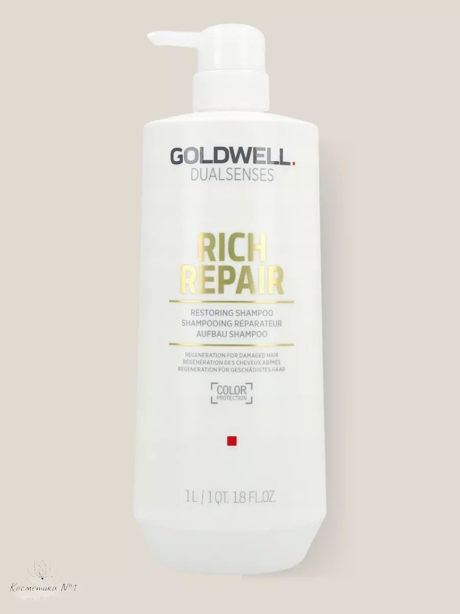 Goldwell's professional shampoo for dry and damaged hair will perfectly maintain the structural integrity of your hair, nourishing it with natural ingredients for a healthy, well-groomed appearance. Ingredients: A complex of oils that intensively moisturizes and nourishes hair, infusing it with a host of beneficial microelements. Rich Repair Restoring Shampoo for brittle and color-treated hair contains a micro PROtec complex with pashmina silk proteins combined with instant-action microfluid technology to care for color-treated hair that requires special attention and impart shine, allowing you to see and feel the results immediately. Gently cleanses and conditions hair, visibly enhancing healthy shine, smoothness, and silkiness. This hair product is as gentle as spring water, and thanks to its unique formula, it instantly detangles problematic, unruly locks, leaving them incredibly smooth, soft, and elastic. Suitable for both professional salon use and at home. To achieve maximum results, stylists recommend using the entire line. This moisturizing shampoo will not only help your hair look attractive and well-groomed, but also maintain it for a long time. It is non-allergenic, non-irritating, and non-flaking, has a comfortable and economical consistency, and a pleasant, subtle scent that lingers on your hair or skin for several hours. Designed for women and men who want to look stylish and well-groomed, it makes a wonderful gift for mom, girlfriend, or loved one for a birthday, Women's Day, or New Year's. Its unique properties will satisfy the most demanding hair care needs and expectations. Regular use is recommended, and for maximum results, use with Goldwell DualSenses Rich Repair Restoring Conditioner and Hair Mask.