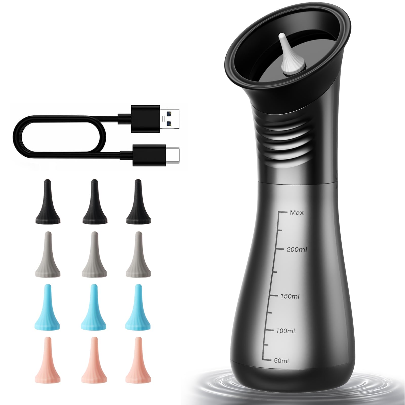 What You Get : Ear cleaning tool 1, 4 kinds of color replaceable nozzles 3(total 12 nozzles), type-C charging cable 1, user manual 1. Tips: Recommend using warm water close to body temperature for ear cleaning. One-handed Non-slip Design : Our ear wax removal tool features one-handed and non-slip design, with IPX7 waterproof, providing safe, reliable and convenient experience for use. Portable and light design for our ear wax removal kit, you can take it effortlessly whether in travel or at home. Our ear irrigation flushing system can gently clean your ears, and remove ear wax, dirt, and debris without harming ear canal. LED Display Long-Lasting Battery : Equipped with a 3000mAh battery, our upgraded electric ear cleaner can be used more than 8 hours continuously after fully charged, without anxiety from using it running out of power while bathing. You can see clearly remaining battery and gear position from the LED display for meeting your daily using. Safe Comfortable Water Pressure Modes : After extensive human ear canal cleaning testing and many researchs on ear wax removal, our ear wax cleaner offers 3 adjustable pressure modes(Low, Pulse, High) and 3 kinds of nozzles(1 hole, 3 holes, 5 holes), which can combine 9 spray water pressures for thorough safe efficient and comfortable ear cleaning while protecting your ear canal, meeting all your needs. Wastewater Back-Flow System : Our upgraded ear cleaner with an innovative integrated dual water tank containing a clean flush water tank and a waste water back-flow tank, keeps the waste water automatically flow back, making your ear cleaning more convenient, efficient and simple.