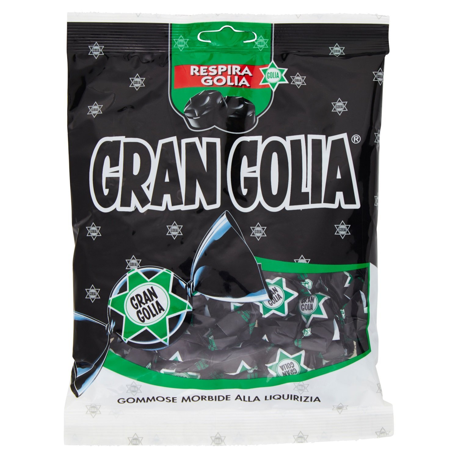 Gummy licorice candy that provides a pleasant sensation of respiratory freshness. Change your perspective, breathe in Golia. A historic Italian brand born in the 1930s, Golia now offers many types of candies—gummy, hard, filled, and unfilled—to satisfy every consumer's taste. Gran Golia is fun, cute, and delicately balsamic. Try the convenient nine-pack of 180g wrappers. The candies are individually wrapped, so you can take them anywhere. This soft, chewy candy is gluten-free. INGREDIENTS Thickener: gum arabic, sugar, glucose syrup, stabilizers: sorbitol, glycerol Licorice juice, fructose, color: E 150a, natural flavorings, coconut oil STORAGE INSTRUCTIONS Store in a cool, dry place See moreGolia Gran Golia Bonbons gommeux doux au goût de réglisse, format stock de 9 enveloppes de 180 g chacuneDESCRIPTION DU PRODUIT DESCRIPTION DU PRODUIT Le bonbon caoutchouteux à la réglisse, qui donne une agréable sensation de fraîcheur respiratoire. Changez de perspective, respire Golia. Marque historique italienne née dans les années 30, Golia propose aujourd'hui de nombreux types de bonbons, gommeux, durs, remplis et non, pour satisfaire les goûts de tous les consommateurs. Gran Golia est amusant, mignon et délicatement balsamique. Essayez le format pratique de neuf enveloppes de 180 g. Les bonbons sont emballés individuellement et vous pourrez les emporter partout avec vous. Ce bonbon caoutchouteux doux est sans gluten. INGRÉDIENTS Épaississant : gomme arabique, sucre, sirop de glucose, stabilisants : sorbitol, glycérol jus de réglisse, fructose, colorant : E 150a, arômes naturels, huile de coco MODE D'EMPLOI Conserver dans un endroit frais et sec Voir plus