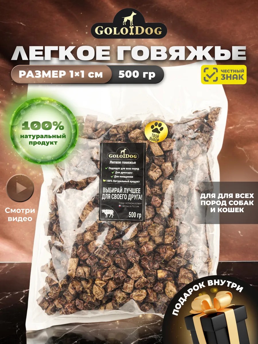 Golodog Говяжье легкое 500гр 1*1см. Лакомство для собак