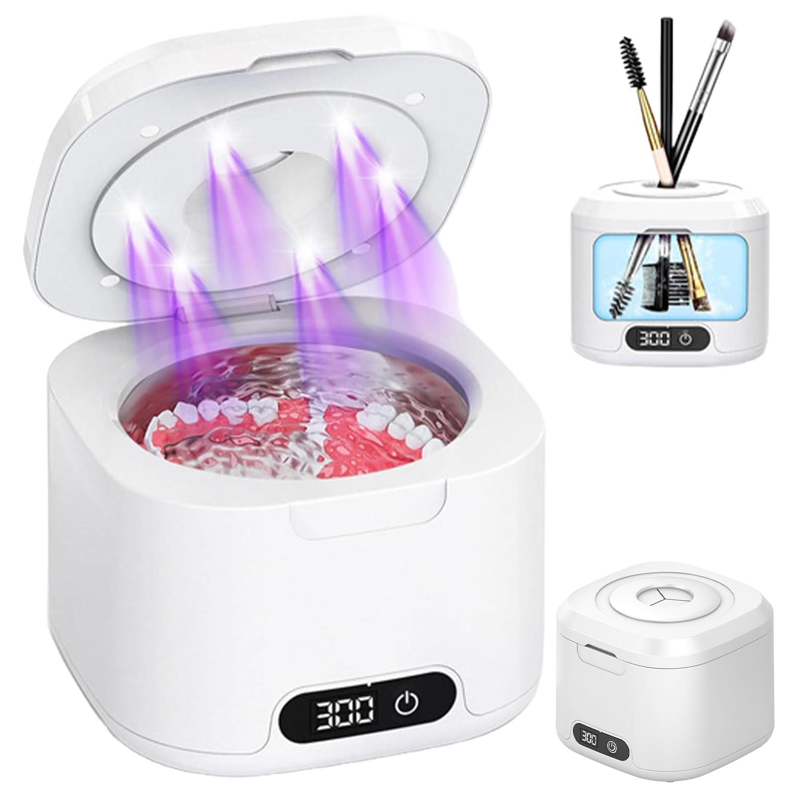 : The compact 49 kHz ultrasonic cleaner is a multifunctional device that thoroughly and gently cleans retainers, aligners, dentures, toothbrush heads, and jewelry. The combination of ultrasonic technology and 6 UV lamps ensures hygienic results and fresh breath. With 4 selectable cleaning modes (180s, 300s, 420s, 600s), the ultrasonic cleaner can be individually adapted to the level of dirt. The 340 ml stainless steel tank offers ample space for all small items, and the compact design makes the retainer cleaner space-saving and easy to store. In addition, the multifunctional silicone opening allows for cleaning toothbrush heads, makeup brushes, or jewelry, making the jewelry cleaner versatile. This device is ideal for home use and as a gift for family and friends. Product Features: Ultrasonic Frequency: 49 kHz Tank Capacity: 340 ml Cleaning Modes: 180s 300s 420s 600s Tank Material: Stainless Steel Functions: UV Light, One-Button Control, Timer, Multifunctional Silicone Opening Suitable for: Mouthguards, Retainers, Aligners, Dentures, Toothbrush Heads, Jewelry Color: White Dimensions: Approx. 13.4 x 13.4 x 11 cm Contents: 1 x 340 ml Ultrasonic CleanerPractical and detailed design: The jewelry cleaning function with a multi-functional silicone opening also allows you to clean toothbrush heads, makeup brushes, and other small items, making it ideal for family and friends. Compact capacity: The container cleaner offers a 340ml stainless steel capacity for dentures, retainers, or jewelry and is space-saving for home use. Quiet operation: The dental appliance cleaner operates with modern noise reduction technology and non-slip rubber feet, ensuring stability and comfort during cleaning. Easy to use: The ultrasonic cleaner features one-button control and 4 cleaning modes, including 6 UV lamps for hygienic cleaning and fresh breath. Advanced cleaning technology: With the 49 kHz ultrasonic cleaner, even the finest dirt from dentures, retainers, aligners, containers, and jewelry is effectively removed – gently and thoroughly, reaching even the smallest crevices.Appareil de nettoyage à ultrasons 49000 Hz avec lumière UV, 340 ml, nettoyeur à ultrasons, 4 modes de nettoyage pour gouttière, prothèses dentaires, rétention, aligneurs, prothèses, têtes de brosse àDESCRIPTION DU PRODUIT Description du produit : Le nettoyeur à ultrasons compact 49 kHz est un appareil multifonction qui nettoie en profondeur et en douceur les gouttières, les rétentions, les aligneurs, les prothèses dentaires, les têtes de brosse à dents et les bijoux. La combinaison de la technologie ultrasonique et de 6 lampes UV assure des résultats hygiéniques et une haleine fraîche. Avec 4 modes de nettoyage sélectionnables (180s, 300s, 420s, 600s), le nettoyeur à ultrasons peut être adapté individuellement à la saleté. Le réservoir en acier inoxydable de 340 ml offre suffisamment d'espace pour toutes les petites pièces et la construction compacte rend le nettoyeur de gouttière peu encombrant et facile à ranger. En outre, l'ouverture multifonction en silicone permet de nettoyer les têtes de brosse à dents, les pinceaux de maquillage ou les bijoux, ce qui rend le nettoyeur de bijoux polyvalent Cet appareil est idéal pour un usage domestique et comme cadeau pour la famille et les amis. Caractéristiques du produit : Fréquence ultrasonique : 49 kHz. Volume du réservoir : 340 ml. Modes de nettoyage : 180s 300s 420s 600s Matériau du réservoir : acier inoxydable. Fonctions : lumière UV, contrôle à un bouton, minuterie, ouverture multifonction en silicone. Convient pour : gouttières, rétenteurs, aligneurs, prothèses dentaires, têtes de brosse à dents, bijoux Couleur : blanc. Dimensions : environ 13,4 x 13,4 x 11 cm. Contenu : 1 nettoyeur à ultrasons de 340 mlDesign détaillé pratique : la fonction de nettoyage de bijoux avec ouverture en silicone multifonction permet également de nettoyer les têtes de brosse à dents, les pinceaux de maquillage et d'autres petits objets, idéal pour la famille et les amis. Capacité compacte : le nettoyant pour conteneurs offre une capacité de 340 ml en acier inoxydable pour les prothèses dentaires, les rétentions ou les bijoux et est peu encombrant pour un usage domestique. Fonctionnement silencieux : le nettoyeur de gouttière dentaire fonctionne avec une réduction du bruit moderne et des pieds en caoutchouc antidérapants, ce qui garantit stabilité et confort lors du nettoyage. Facile à utiliser : le nettoyeur à ultrasons dispose d'un contrôle à un bouton et de 4 modes de nettoyage, y compris 6 lampes UV pour un nettoyage hygiénique et une haleine fraîche. Technologie de nettoyage avancée : avec le nettoyeur à ultrasons 49 kHz, même les saletés les plus fines des prothèses dentaires, des gouttières, des aligneurs, des conteneurs et des bijoux sont efficacement éliminées – en douceur et en profondeur jusque dans les plus petites interstices.