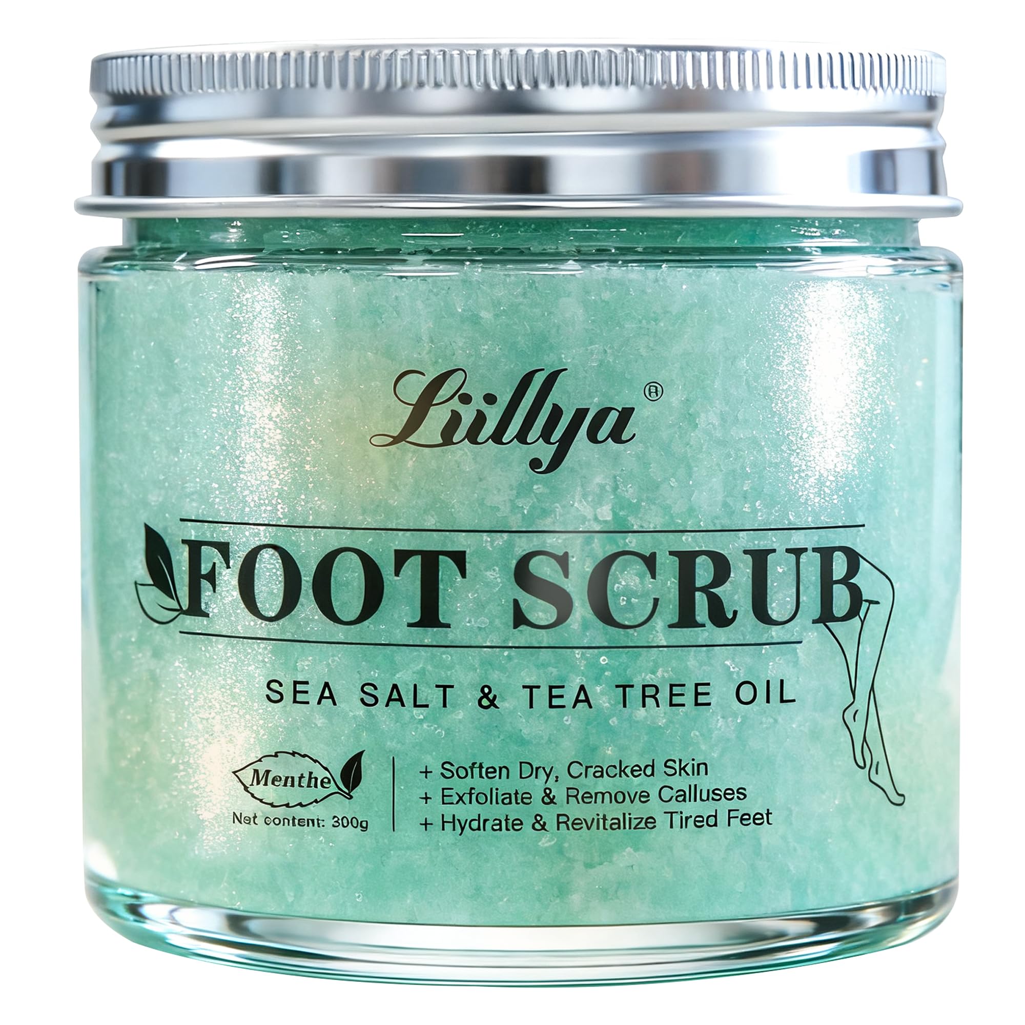 Gommage Corps Pieds Naturel au Sel Marin, Arbre à Thé Menthe Poivrée – Exfoliant Hydratant pour Peau Sèche, Talons Callosités, Soin Lissant Naturel, 300g