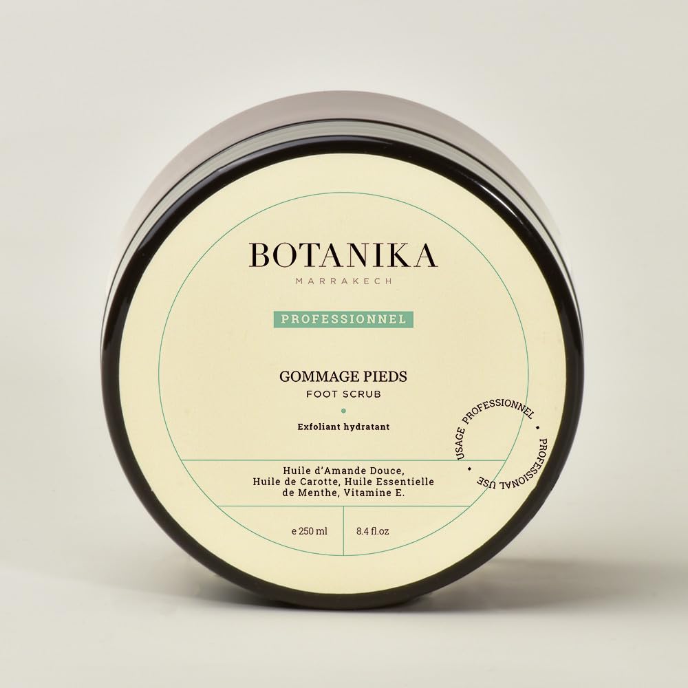 Country of origin: MA. Volume: 250ml. A renewing treatment with apricot kernel powder mixed with prickly pear powder to gently remove dead cells and roughness and promote cell renewal. With Sweet Almond Oil, Carrot Oil, Peppermint Essential Oil, Vitamin E.Pays origine: MA. Contenance: 250ml. Un soin rénovateur à la poudre de noyau d'abricot mixée à la poudre de figue de barbarie pour éliminer en douceur les cellules mortes et les rugosités et favoriser le renouvellement cellulaire., À l'Huile dAmande Douce, Huile de Carotte, Huile Essentielle de Menthe, Vitamine E.Gommage pieds Pro
