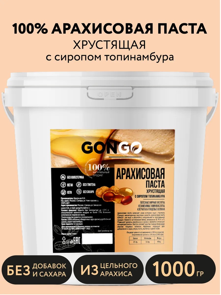 | Количество предметов в упаковке | Арахисовая паста без сахара 1000 г |