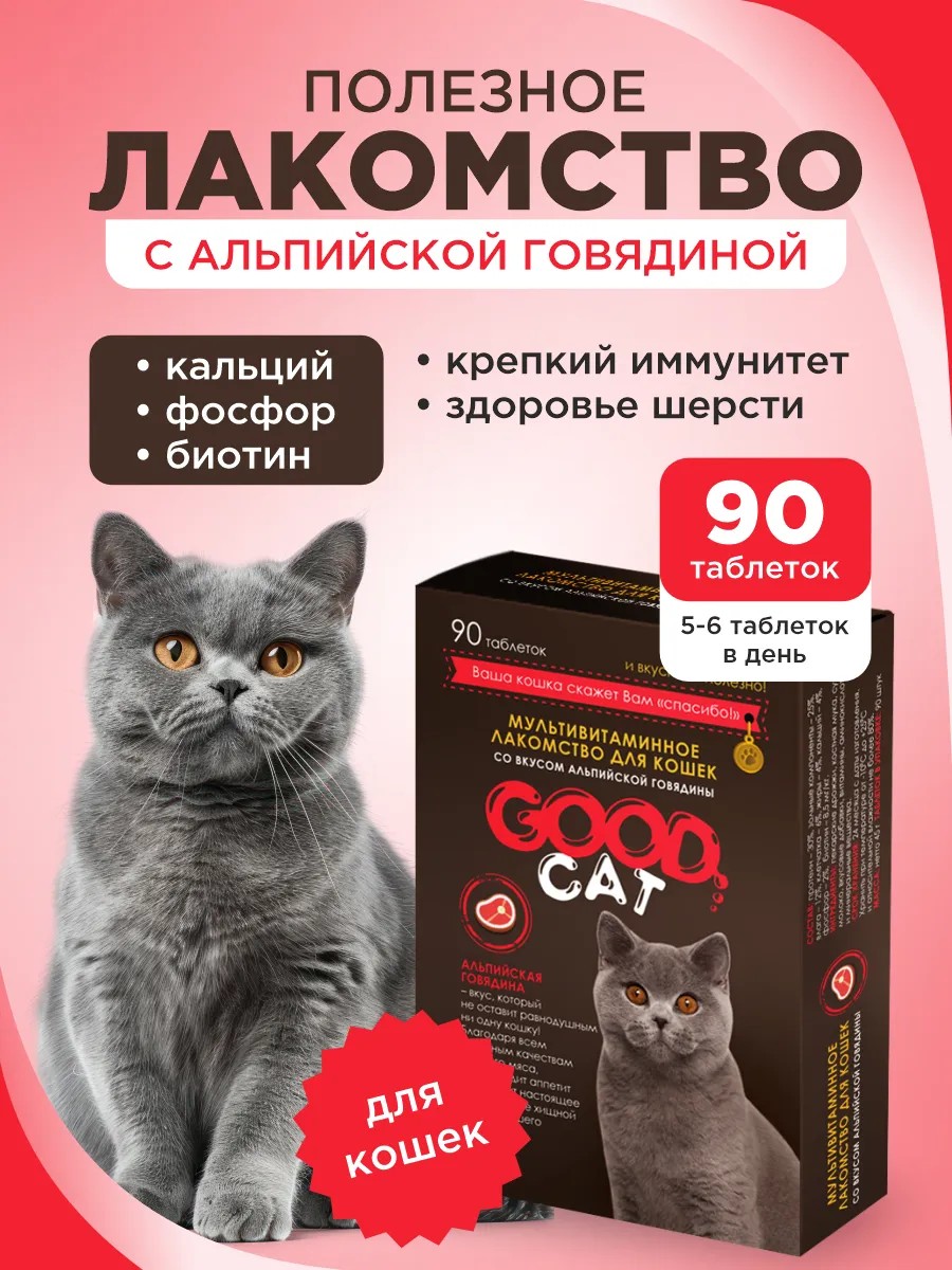 Good Cat Полезное лакомство для кошек со вкусом альпийской говядины 90 таб.