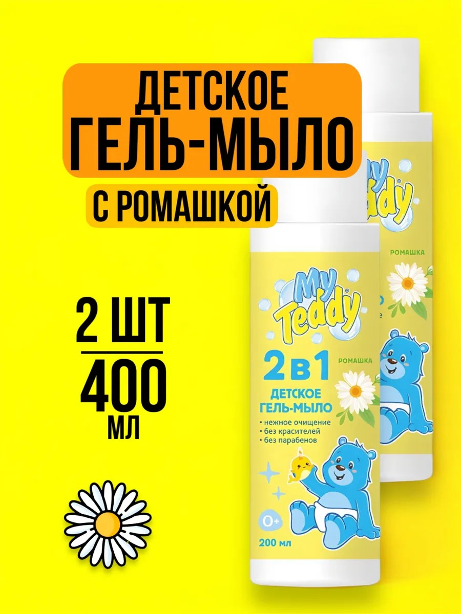| Комплектация | Детский гель-мыло для мальчиков и девочек c ромашкой набор 200 мл - 2 флакона |