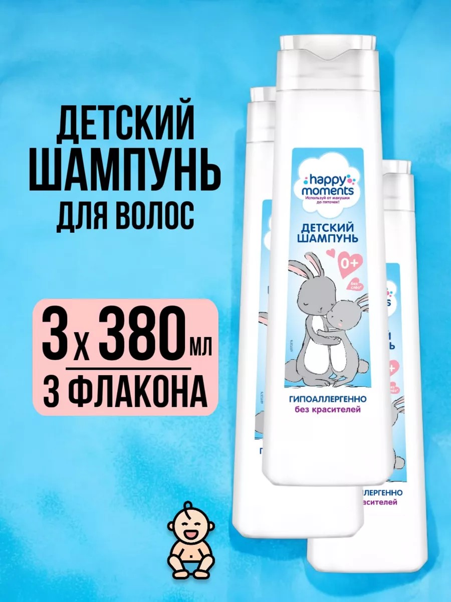 | Комплектация | Детский шампунь для волос без отдушки Happy Moments - 3 флакона по 380 мл |