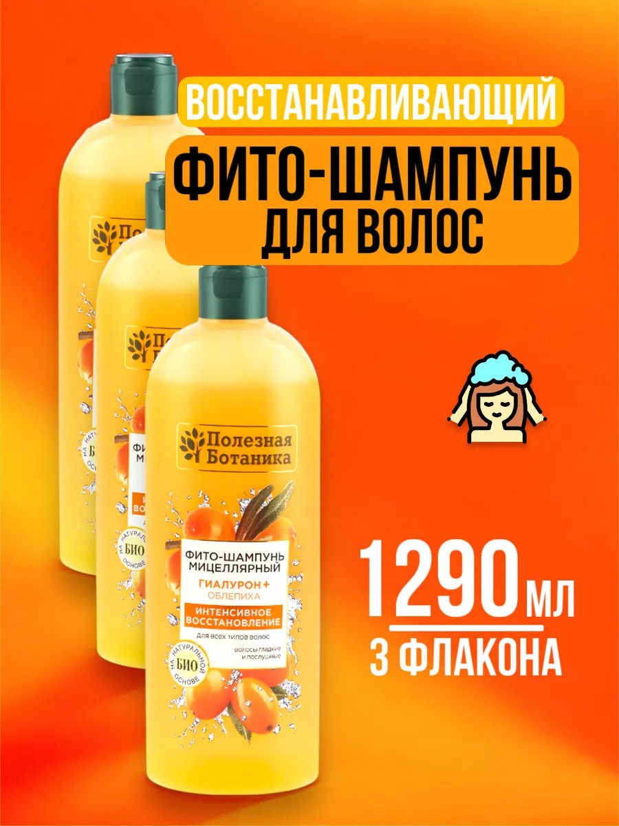 | Комплектация | Фито-шампунь для восстановления волос с гиалуроном и Облепихой набор 430 мл - 3 бутылки |