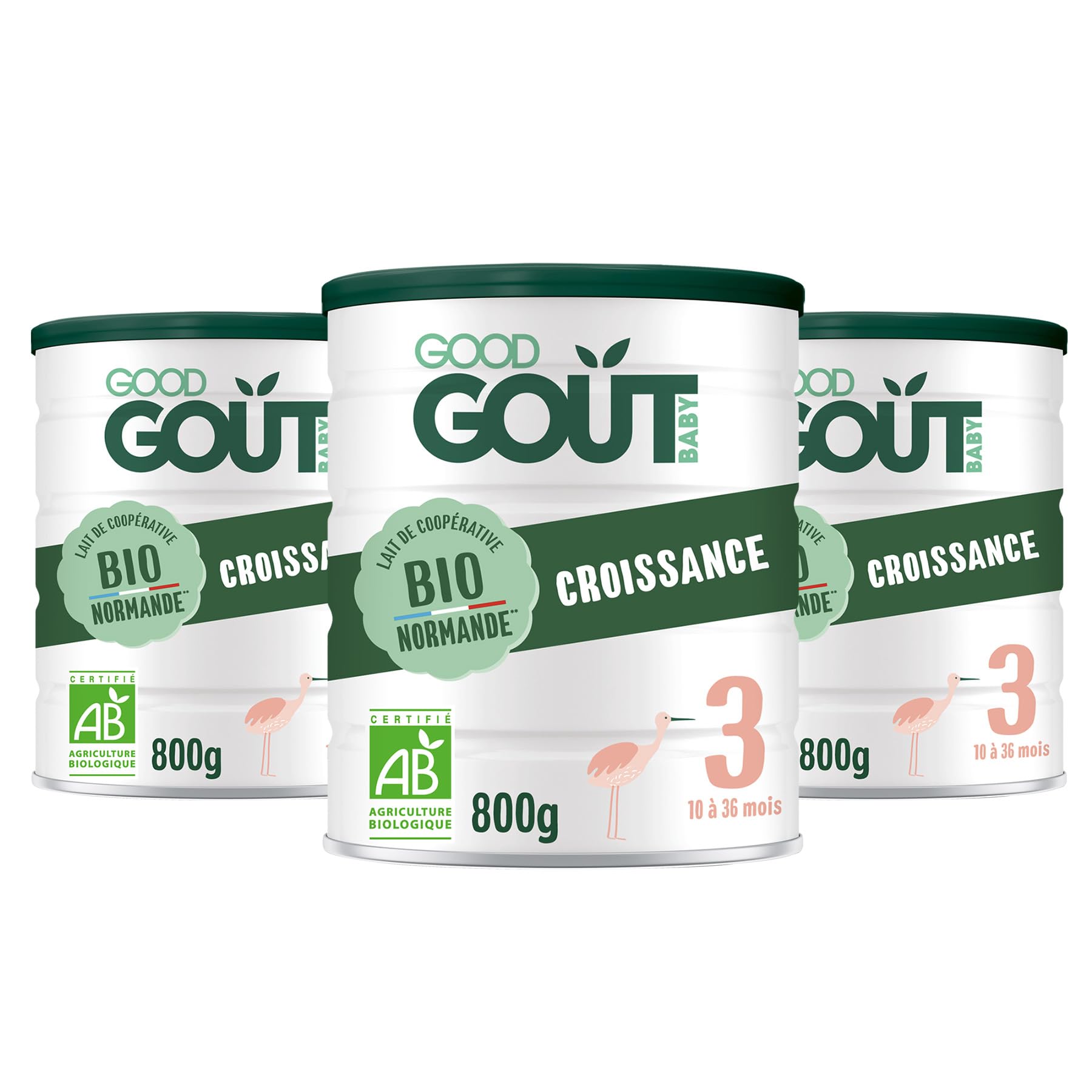 Offering healthy foods rich in flavors, Good Goût is a brand specializing in the development of delicious recipes for babies: ready meals, vegetable delicacies, stirred ones, fruit gourds in compote-type format, and gourmet biscuits A common point in all our baby products: the list of ingredients is short, and without palm oil. At Good Goût, we go to the essentials to find the true taste of fruits and vegetables. Designed for the pleasure of your children, Good Goût products are manufactured in accordance with organic farming regulations. Healthy delicacies that preserve the quality of soil, air, water and natural ecosystems. By choosing Good Goût, you are offering your children quality, healthy and sustainable products. Together, let's create a better future, one bite at a time. Specially formulated to meet the nutritional needs of your baby as part of a diversified diet, Good Goût growth infant milk is composed of good milk cream, vitamins, minerals and all the nutrients necessary for its development. In accordance with current regulations. INGREDIENTS Demineralized whey1 (MILK), vegetable oils1 (sunflower, rapeseed, copra), skimmed MILK 114 , LACTOSE1, MILK cream1 5.5 , minerals (iron pyrophosphate, zinc sulfate, magnesium chloride, calcium chloride, potassium phosphate, calcium citrate, sodium phosphate, calcium chloride, potassium hydroxide, calcium hydroxide, potassium citrate, potassium hydroxide, potassium iodide, sodium selenite, copper sulfate, manganese sulfate, sodium chloride), FISH oil, vitamins (A, B1, B2, B3, B5, B6, B8, B9, B12, C, D, E, K), Mortierella alpina oil, L-tyrosine, L-phenylalanine, choline chloride, L-tryptophan, L-histidine, inositol, L-carnitine, emulsifier: SOJA lecithin1, antioxidant: extract rich in tocopherols. 1. Ingredients from organic farming DIRECTIONS FOR USE 1. Wash your hands thoroughly. 2. Pour the necessary quantity of water (weakly mineralized) or spring suitable for infants, at room temperature or lukewarm ( BRINGING TASTE BACK TO BABY'S PLATE: Campaigning for simple and flavorful food, Good Goût offers organic, tasty, varied recipes that are ideal for balancing baby's meals. A PRACTICAL FORMAT: Practical, resealable and fully recyclable, our infant milk box could well become your best ally. ORGANIC SKIMMED MILK AND NORMANDY CREAM: With the help of infant nutrition experts, Good Goût has developed this palm oil-free formula, produced in Normandy from French organic skimmed milk and cream, harvested from farms located less than 50 km from the dairy. This short circuit therefore involves less transport, and allows us to reduce our carbon footprint. FROM 10 MONTHS TO 3 YEARS: From 10 months, this organic growth milk meets the nutritional needs of babies up to 3 years, as part of a diversified diet in accordance with current regulations. ORGANIC GROWING-UP MILK: Can be an alternative to breast milk when the mother cannot or does not want to breastfeed, This organic infant milk is a formula based on organic French milk cream, alpha-linolenic acid, an essential fatty acid, which contributes to the normal development of the brain and nervous tissue, Without palm oil or maltodextrin, this infant milk favors lactose as the only source of carbohydrates, an ingredient present in breast milk. Proposant des aliments sains et riches en saveurs, Good Goût est une marque spécialisée dans l'élaboration de délicieuses recettes à destination des bébés : plats cuisinés, délices de légumes, brassés, gourdes de fruits en format type compote, et biscuits gourmands Un point commun à tous nos produits bébé : la liste des ingrédients est courte, et sans huile de palme. Chez Good Goût, on va à l'essentiel pour retrouver le vrai goût des fruits et des légumes, Pensés pour le plaisir de vos enfants, les produits Good Goût sont fabriqués conformément à la réglementation de l'agriculture biologique. Des délices sains et qui préservent la qualité des sols, de l'air, de l'eau et des écosystèmes naturels. En choisissant Good Goût, vous offrez à vos enfants des produits de qualité, sains et durables. Ensemble, créons un avenir meilleur, une bouchée à la fois. Spécialement formulé pour répondre aux besoins nutritionnels de votre bébé dans le cadre d'une alimentaiton diversifiée, le lait infantile de croissance Good Goût est composé d'une bonne crème de lait, de vitamines, de minéraux et de tous les nutriments nécessaires à son développement. Conformément à la réglementation en vigueur. INGRÉDIENTS Lactosérum déminéralisé1 (LAIT), huiles végétales1 (tournesol, colza, coprah), LAIT écrémé114 , LACTOSE1, crème de LAIT1 5,5 , minéraux (pyrophosphate de fer, sulfate de zinc, chlorure de magnésium, chlorure de calcium, phosphate de potassium, citrate de calcium, phosphate de sodium, chlorure de calcium, hydroxyde de potassium, hydroxyde de calcium, citrate de potassium, hydroxyde de potassium, iodure de potassium, sélénite de sodium, sulfate de cuivre, sulfate de manganèse, chlorure de sodium), huile de POISSON, vitamines (A, B1, B2, B3, B5, B6, B8, B9, B12, C, D, E, K), huile de Mortierella alpina, L-tyrosine, L-phénylalanine, chlorure de choline, L-tryptophane, L-histidine, inositol, L-carnitine, émulsifiant: lécithine de SOJA1, antioxydant: extrait riche en tocophérols. 1. Ingrédients issus de l'agriculture biologique MODE D'EMPLOI 1. Lavez-vous soigneusement les mains. 2. Versez la quantité nécessaire d'eau (faiblement minéralisée) ou de source convenant aux nourrissons, à température ambiante ou tiède ( REMETTRE DU GOÛT DANS L'ASSIETTE DE BÉB?: Militant pour une alimentation simple et pleine de saveur, Good Goût propose des recettes bio, goûteuses, variées et idéales pour équilibrer les repas de bébés. UN FORMAT PRATIQUE : Pratique, refermable et entièrement recyclable, notre boîte de lait infantile pourrait bien devenir votre meilleure alliée. LAIT ÉCRÉMÉ ET CRÈME NORMANDE B