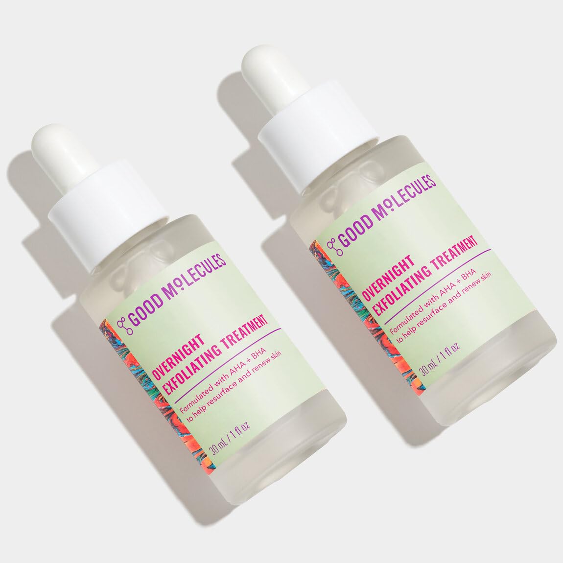 Good Molecules Overnight Exfoliating Treatment Pack 2 1 fl oz / 30 ml Each | Lightweight Face Exfoliator with AHA & BHA Glycolic & Salicylic Acid 1 Fl Oz (Pack of 2)
