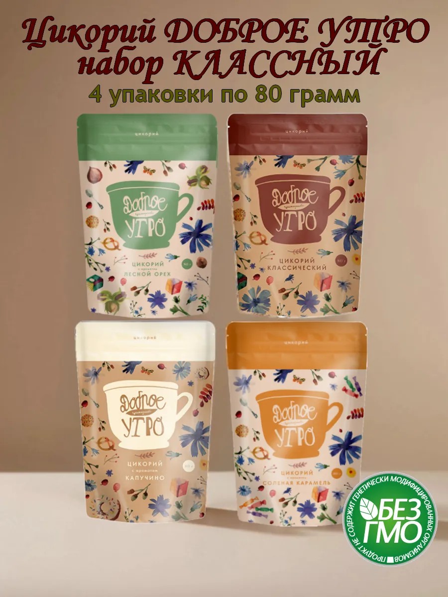 The "Good Morning" chicory set of 4 flavors is the ideal choice for those who value a healthy lifestyle and a variety of flavors. This set includes four unique flavors, each made from high-quality chicory grown in environmentally friendly conditions. Chicory "Good Morning" not only enriches your diet with nutrients but also adds a pleasant note of taste to your day.