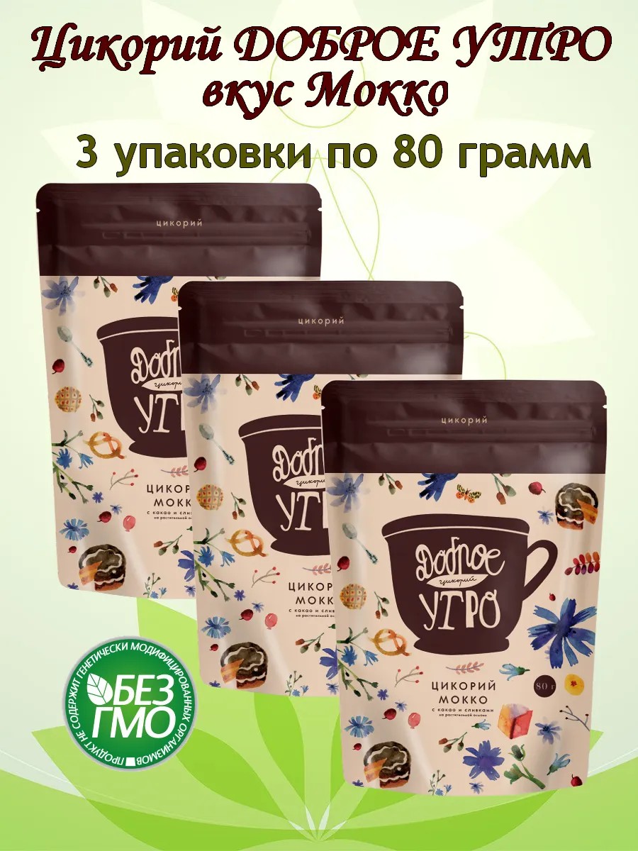Natural instant chicory "Mocha" "Good Morning" is a delicious and healthy drink that will be a great addition to your daily routine. The package contains three 80-gram packets, making it convenient for storage and use. Chicory "Mocha" does not contain GMOs or dyes, and its 100% natural composition will allow you to enjoy the pure taste and aroma.