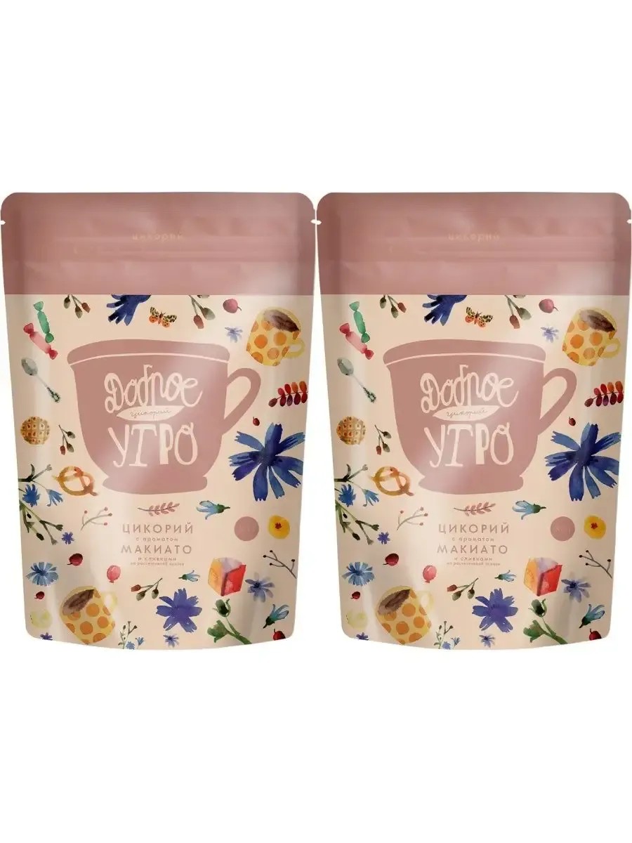 The set includes 2 packages. Total weight: 160 g. Good Morning, Chicory Macchiato Powder. Chicory with original coffee aromas and slightly bitter notes. It will give you pleasure with every sip, lift your spirits, and is an excellent choice for lovers of invigorating natural drinks.