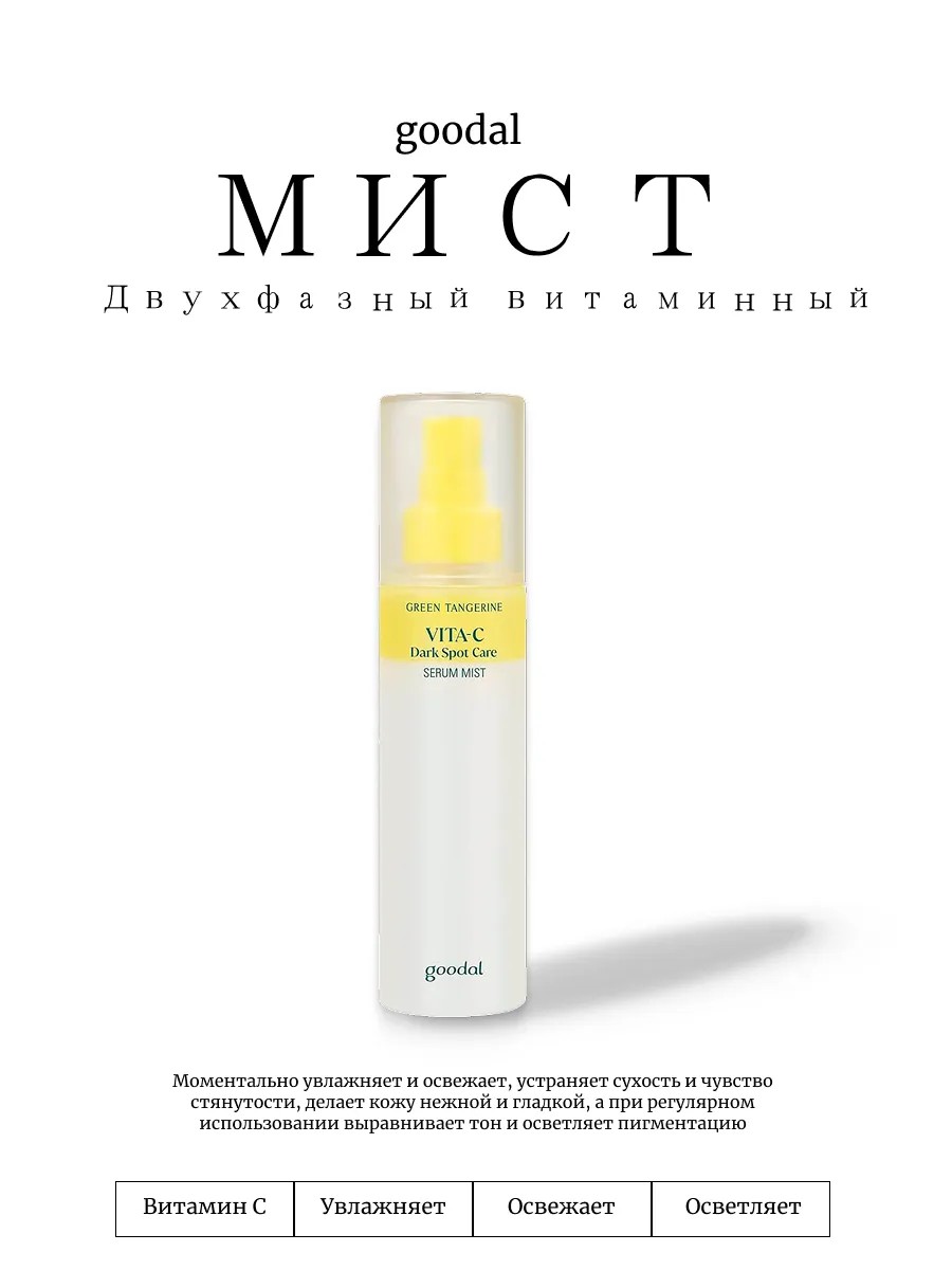 | Комплектация | Goodal Двухфазный витаминный мист Green Tangerine Vita C Dark Spot Care Serum Mist |
