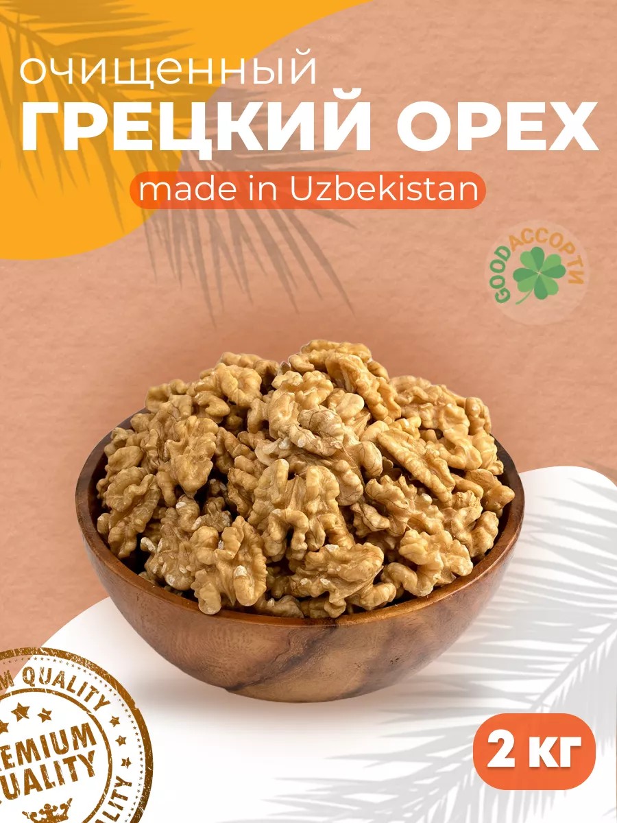 GOODАССОРТИ приглашает вас насладиться вкусом и пользой грецкого ореха. Этот натуральный продукт - настоящий дар природы, способный подарить вам энергию, улучшить здоровье и разнообразить ваше питание. От добавления в салаты до создания уникальных блюд - грецкий орех приглашает вас на путешествие в мир вкуса и заботы о здоровье.
