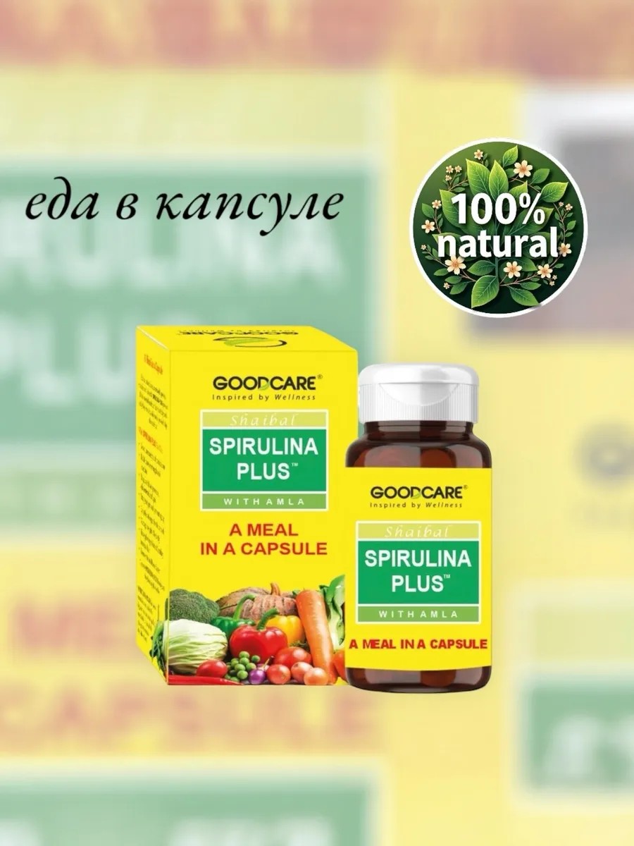 Пищевая добавка: Goodcare Spirulina Plus Capsules — это богатая питательными веществами добавка, которая помогает обеспечить организм широким спектром необходимых белков, витаминов, минералов и других питательных веществ.Повышение иммунитета: этот богатый растительным белком суперпродукт помогает улучшить мышечную силу и уровень энергии. Он также помогает повысить общую жизненную силу.Богат антиоксидантами: благодаря своим антиоксидантным свойствам и питательным веществам, повышающим иммунитет, спирулина помогает укрепить иммунитет. Она насыщена богатой витамином С амлой, которая помогает обеспечить непревзойденную защиту и дополнительно стимулирует иммунную систему.Зеленый суперпродукт для хорошего здоровья: Goodcare Spirulina Plus также помогает регулировать уровень холестерина и сахара в крови.Питание с учетом калорий: спирулина может усиливать чувство сытости. Эти капсулы помогают регулировать обмен веществ и поддерживать контроль веса.Гарантированное качество: Goodcare доверяют тысячи довольных клиентов по всему миру за его приверженность производству высококачественных аюрведических продуктов, созданных из лучших растительных экстрактов и питательных веществ, что гарантирует максимальную эффективность.Сертифицированное благо природы: Goodcare Spirulina Plus производится на сертифицированном ВОЗ заводе GMP. Принимайте по 2 капсулы в день во время завтрака