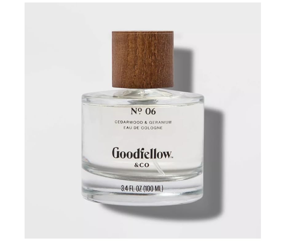 Sleek glass bottle with a wood cap is worthy of countertop display. Scent layers well with other Goodfellow & Co grooming products. 3.4fl oz size offers you plenty of your favorite scent. Cedar and geranium cologne has a bright yet woodsy fragrance.