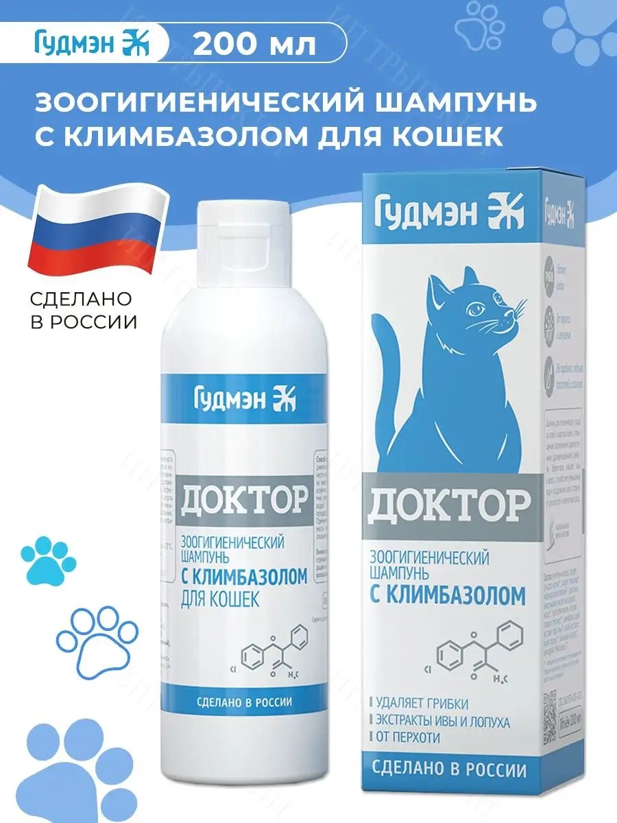 Гудмэн Шампунь для кошек Доктор с климбазолом противогрибковый