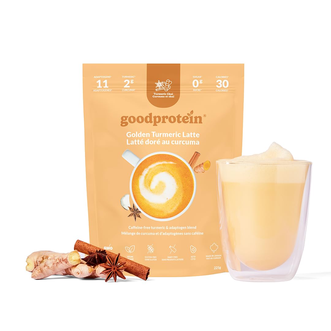 GoodProtein Golden Turmeric Latte Powder - 100% Natural Plant-Based Adaptogen Blend | Rich & Creamy with Antioxidants for Stress Relief | Vegan Non-GMO Dairy-Free No Added Sugar | 225g 30 Servings