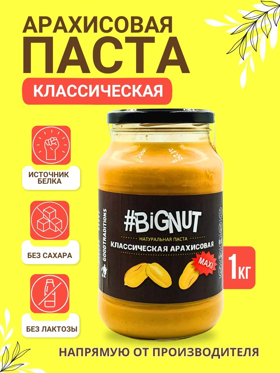Арахисовая паста от компании Добрые Традиции – это идеальный продукт для тех, кто заботится о своем питании. В ее составе только натуральные и качественные орехи, прошедшие жесткий контроль . Не содержит глютена, сахара и ГМО.