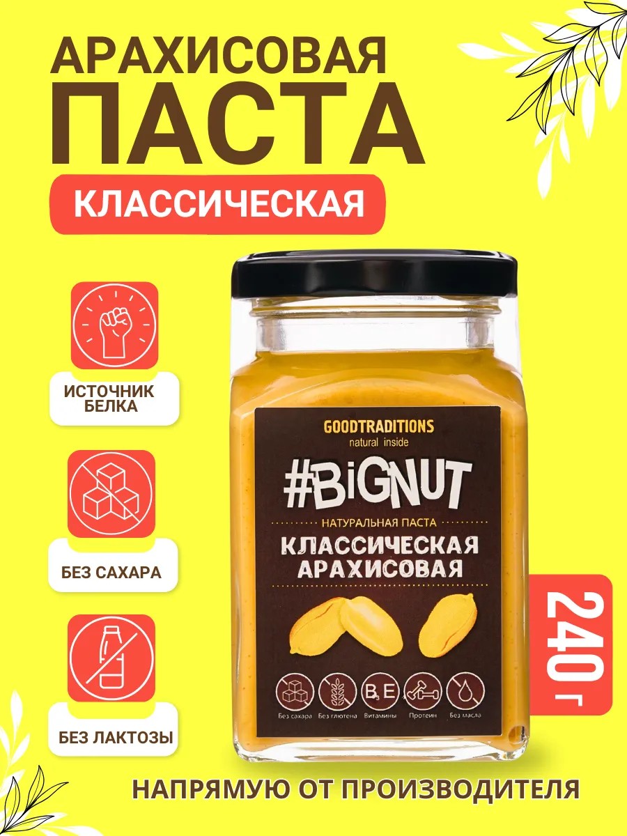 Арахисовая паста от компании Добрые Традиции – это идеальный продукт для тех, кто заботится о своем питании. В ее составе только натуральные и качественные орехи, прошедшие жесткий контроль . Не содержит глютена, сахара и ГМО.