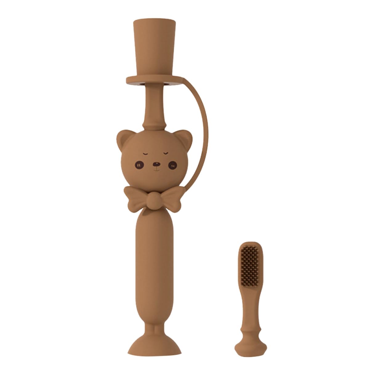 -Tahnbrush: finely processed with suction cup design on the underside so that it can be easily placed on the desk.Silicone baby toothbrush: Soft bristles clean the teeth of children and the tooth pillow with a unique handle relieves wound gums in infants.Toothbrush with soft bristles.Soft toothbrush: nice bear pattern with a comfortable handle, not easy to slip and look comfortable.Silicone toothbrush.Soft bristles for toddlers: made of material, safe and durable for a long useful life.Toothbrush for toddlers.Silicone baby toothbrush: made of material, safe and durable for a long service life.