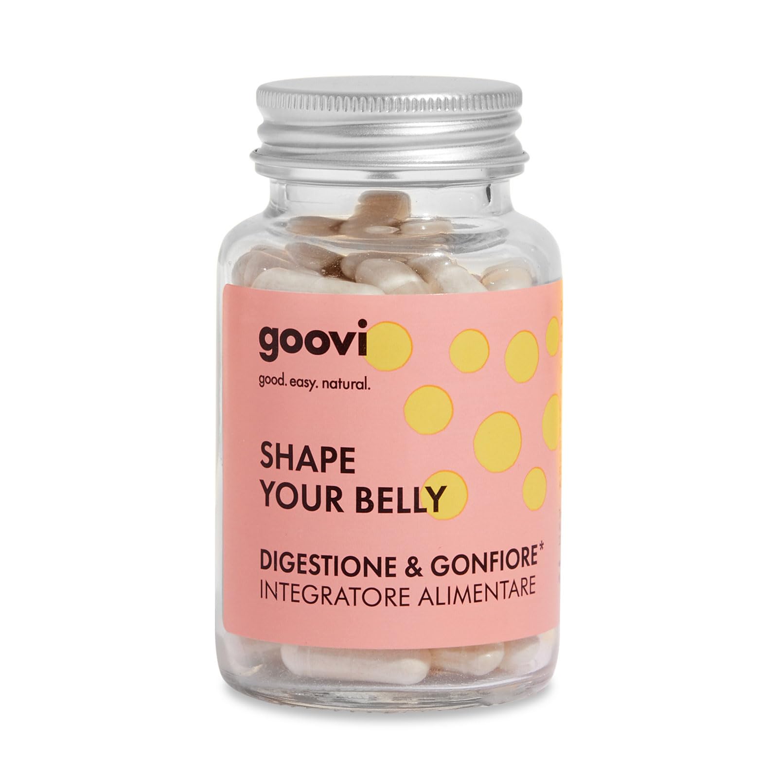 GOOVI Shape Your Belly Dietary Supplement for Digestion and Bloating, useful for promoting digestion and relieving bloating, for a flat stomach, pack of 60 capsules. INGREDIENTS Kombucha [Fermented Apple (Pyrus malus L.) Fruit, Fermented Green Tea (Camellia sinensis (L.) O. Kuntze) Leaves, Fermented Ginger (Zingiber officinale Rosc.) Root, Maltodextrin], Fermented Maltodextrin Enzyme Complex (amylase, protease, glucoamylase, lipase, cellulase, lactase, pectinase), Capsules (Coating agent: hydroxypropyl methylcellulose), Thickening agent: calcium phosphate Fennel (Foeniculum vulgare Mill.) Dry fruit extract titrated 0.5 essential oil, ginger (Zingiber officinale Rosc.) Essential oil, anti-caking agents: silicon dioxide, magnesium salts of fatty acids (magnesium stearate).GOOVI GOOD, EASY, NATURAL: CLEAN and VEGAN formulas with skin-friendly and sustainable ingredients. Naturally sourced active ingredients selected for quality and effectiveness. Products full of GOOD VIBES. Directions for use: It is recommended to take 2 capsules daily with a glass of water. Benefits: The green tea in Kombucha promotes normal bowel function. Ginger and fennel support digestion and help with regular gastrointestinal motility and gas elimination. Ingredients: Kombucha green tea, ginger, fennel, and digestive enzymes. SHAPE YOUR BELLY is a dietary supplement that promotes digestion and helps relieve bloating. Pack of 60 capsules.Goovi, Shape Your Belly, Complément alimentaire Digestion et Gonflement, utile pour favoriser la digestion et soulager la sensation de gonflement, ventre plat, lot de 60 capsulesDESCRIPTION DU PRODUIT DESCRIPTION DU PRODUIT GOOVI Shape Your Belly Complément alimentaire Digestion et Gonflement, utile pour favoriser la Digestion et soulager la sensation de gonflement, ventre plat, lot de 60 capsules. INGRÉDIENTS Kombucha [Apple (Pyrus malus L.) Fruit fermenté, vert tea (Camellia sinensis (L.) O. Kuntze) fermented leaves, ginger (Zingiber officinale Rosc.) Fermented root, maltodextrin], fermented maltodextrin enzyme complex (amylase, protease, glucoamylase, lipase, cellulase, lactase, pectinase), capsules (coating agent: hydroxypropyl methylcellulose), thickening agent: calcium phosphate fennel (Foeniculum vulgare Mill.) Dry fruit extrait titrated 0,5 huile essentielle, ginger (Zingiber officinale Rosc.) Huile essentielle, anti-caking agents : dioxyde de silicon, magnésium salts of fatty acids (stéarate de magnésium).GOOVI GOOD, EASY, NATURAL : formules CLEAN et VEGAN avec des ingrédients doux pour la peau et durables. Actifs d'origine naturelle sélectionnés pour la qualité et l'efficacité. Produits pleins de GOOD VIBES. Mode d'utilisation : il est recommandé de prendre 2 capsules par jour à avaler avec un verre d'eau. Avantages : le thé vert présent à l'intérieur du Kombucha favorise la fonction intestinale normale. Le gingembre et le fenouil exercent une fonction digestive et aident à la motilité gastro-intestinale régulière et l'élimination des gaz. Ingrédients complément alimentaire à base de thé vert de Kombucha, gingembre, fenouil et enzymes digestives. SHAPE YOUR BELLY est un complément alimentaire qui favorise la digestion et aide à soulager la sensation de gonflement. Lot de 60 capsules.