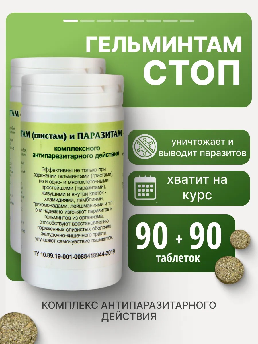 | Комплектация | Гельминтам (глистам) и паразитам-стоп (Антипаразит), таблетки, 90 шт. - 2 уп. |