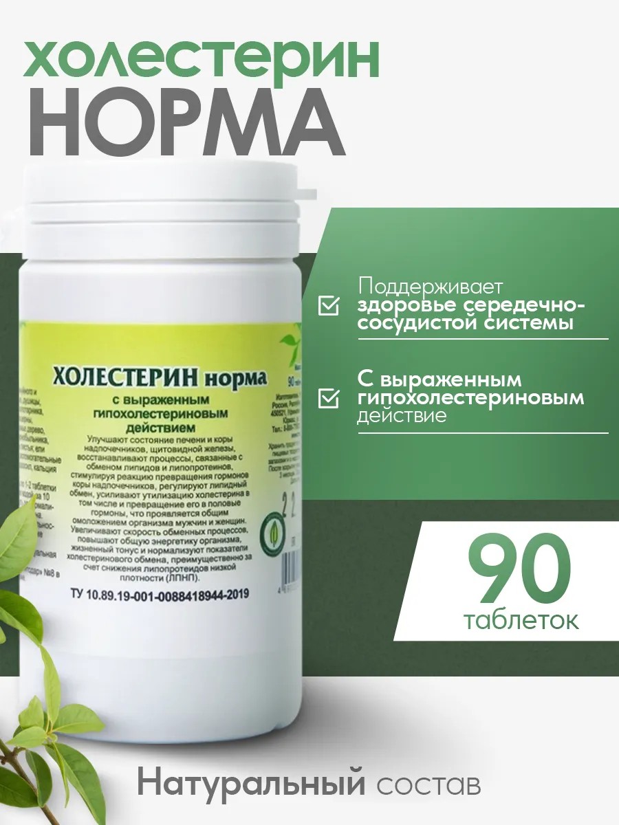 | Комплектация | Холестерин норма - 1 уп. 90 таблеток |