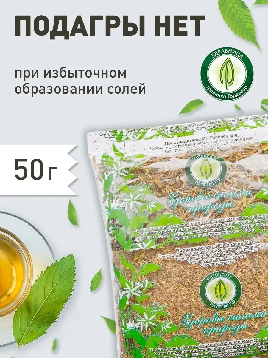 Gordeev's Gout No Herbal Tea is a tea drink for gout and kidney stones. This herbal tea for gout is used for conditions caused by excessive production of uric and lactic acids and inadequate renal excretion. Over time, excess salts in the body lead to kidney stones, salt deposits, gout, and spurs. This tea is an effective renal, diuretic, choleretic, salt-removing, uroseptic, and anti-inflammatory agent. The active herbal components of this gout tea relieve acute pain, reduce joint inflammation, and tissue swelling. Regular use of this herbal tea for gout, Gout No, promotes the breakdown of salt deposits, the dissolution of kidney stones, and their passage as sand and tophi. It also normalizes uric acid levels and slows crystallization, which causes joint deformation and inflammation. The natural composition of this herbal gout remedy has a mild pharmacological effect.