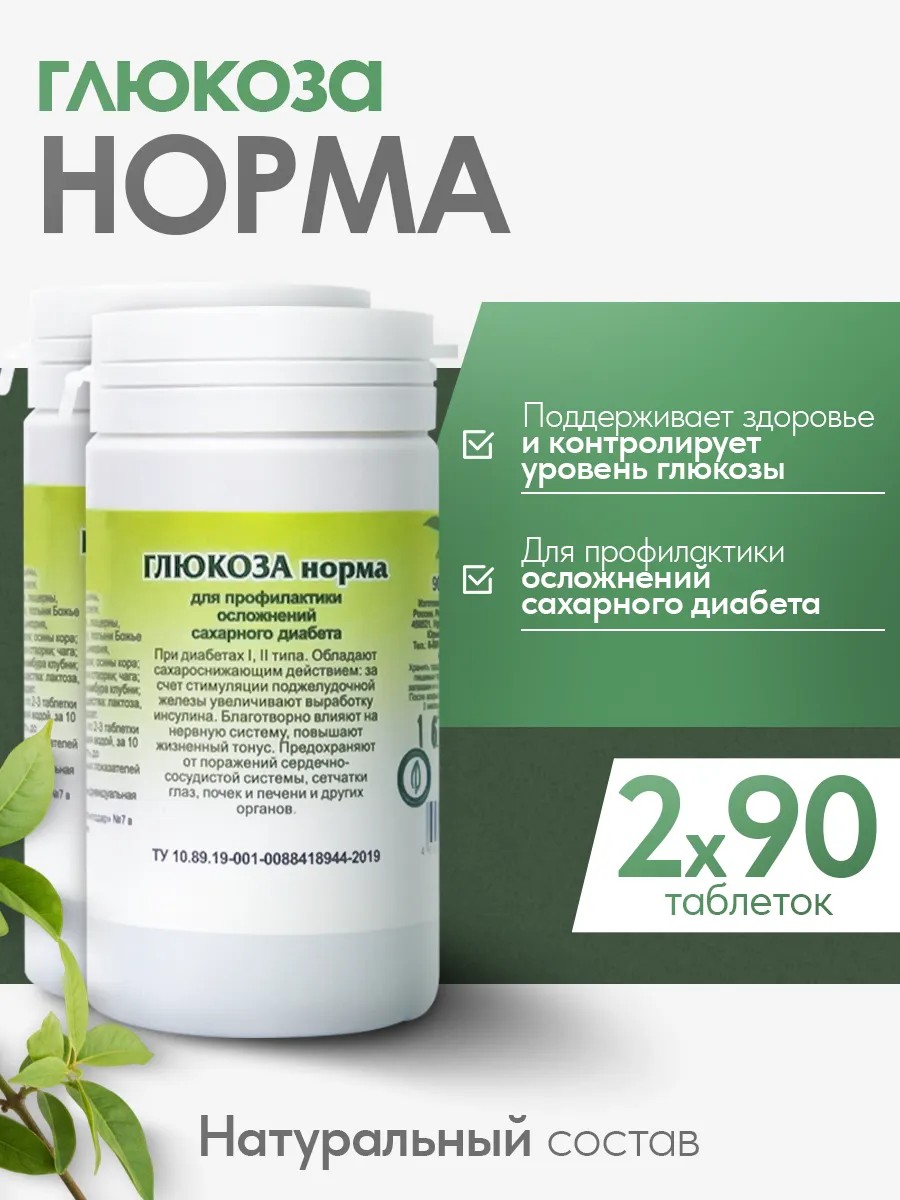 | Комплектация | Глюкоза норма профилактика сахарного диабета, 90 таблеток - 2 уп. |