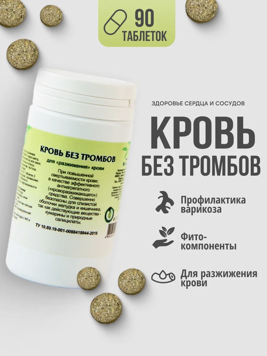 Травяной сбор для сердца и сосудов в таблетках Кровь без тромбов марки Гордеев, рекомендуется при повышенной свертываемости крови. Травяной сбор являются эффективным антиагрегантным и антикоагулянтным средством, способствующим разжижению крови. Полностью натуральный состав препарата делает его безопасным для слизистой оболочки кишечника и желудка. Активные компоненты травяного сбора в таблетках - кумарины и природные салицилаты - имеют ряд полезных свойств. Кумарины обладают противовирусными, антиоксидантными, успокаивающими и противогрибковыми свойствами, а также расширяют кровеносные сосуды и улучшают их проходимость. Салицилаты же способствуют разжижению крови. Показания к применению травяного сбора Кровь без тромбов: повышенная свёртываемость крови; профилактика тромбозов и тромбофлебитов; поддержание здоровья сердечно-сосудистой системы при наличии факторов риска (курение, малоподвижный образ жизни, неправильное питание). Способ применения: Внутрь по 1 таблетке 3 раза в день, запивая водой, независимо от приёма пищи. Минимальный курс приема: 1-2 месяца. Повторять курс 3-4 раза в год, делая между ними перерывы в 10-12 дней. Особенности применения: контроль свертываемости крови. Перед применением проконсультироваться с врачом.