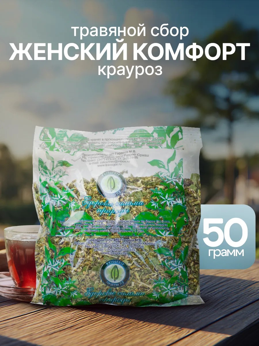 The herbal tea "Women's Comfort" (Kraurosis) by Gordeev is designed to support women's health during age-related changes.