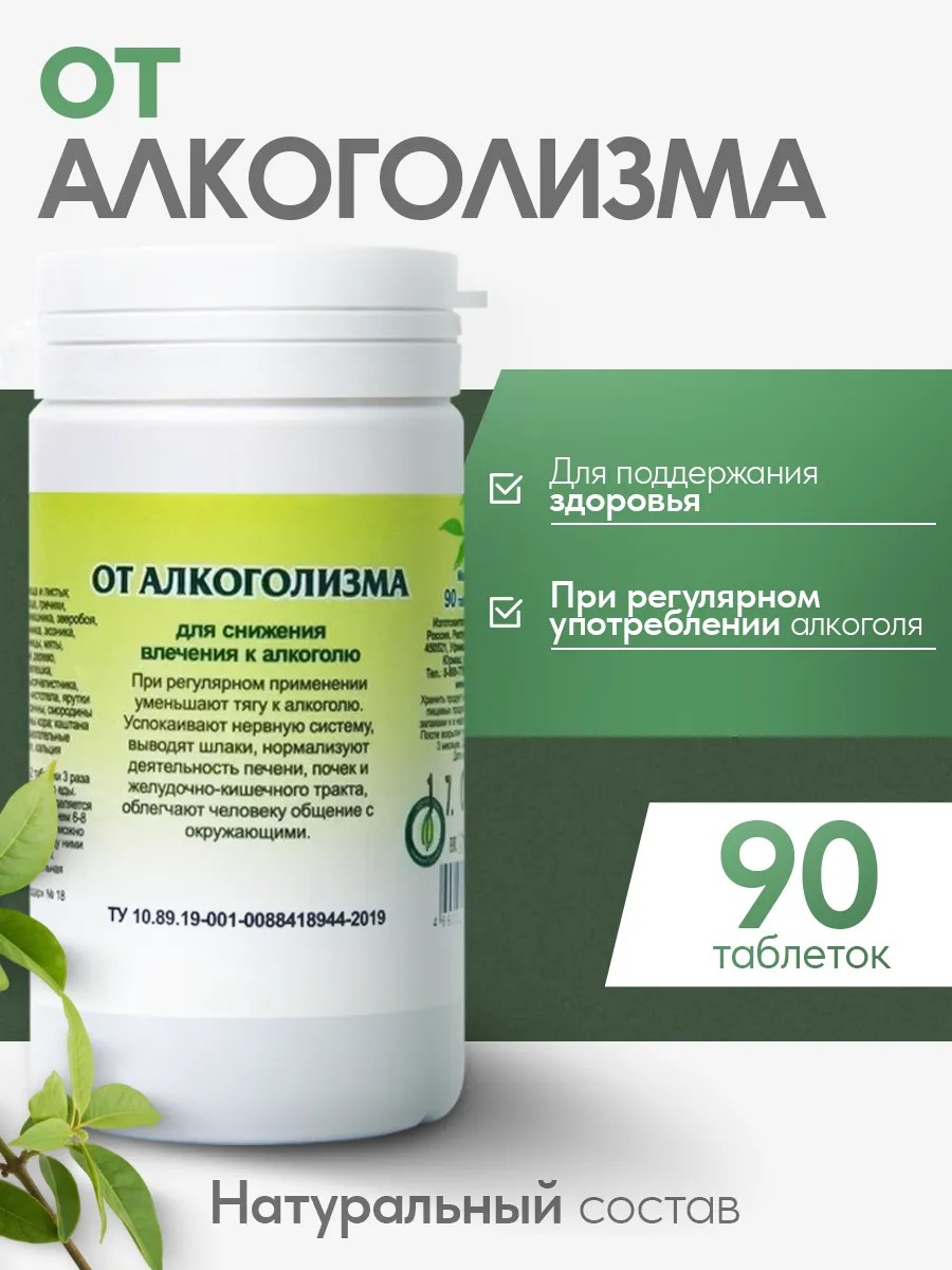 | Package contents | Herbal tea for alcoholism - 1 can, 90 tablets |