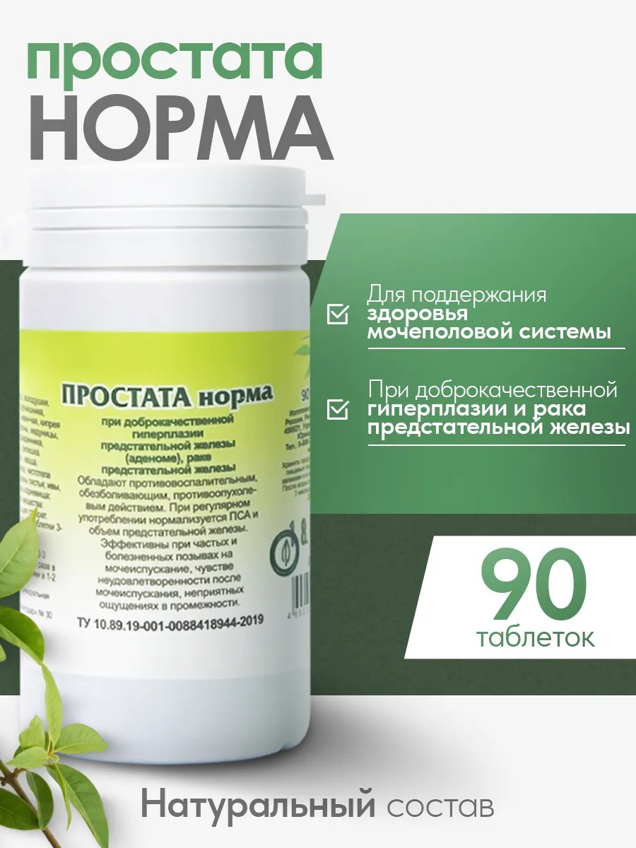 Травяной сбор в таблетках Простата норма для мужчин при аденоме, простатите, для здоровья мочеполовой системы. Натуральное средство от простатита обладают противовоспалительным, обезболивающим и противоопухолевым действием. Травы, входящие в рецептуру таблеток от простатита для мужчин, эффективны при доброкачественной аденоме, а так же раке предстательной железы и болезненном мочеиспускании. В результате применения травяного сбора для мужчин Простата Норма устраняются воспалительные процессы мочеполовой системы, прекращаются частые и болезненные позывы к мочеиспусканию, неприятные ощущения в промежности. Применение таблеток Гордеева Простата норма нормализует анализы на ПСА, объем предстательной железы. Способ применения: По 1-2 таблетки 3-4 раза, запивая водой, независимо от приёма пищи. Минимальный курс приема: 2-3 месяца. Повторные курсы (2-3 раза в год), с перерывами между ними в 1-2 недели. Состав: Астрагала, володушки, дербенника, золотарника, зюзника, иван-чая, кипрея мелкоцветкового, лапчатки гусиной, люцерны, медуницы, мяты, полыни Божье дерево, репешка, синеголовника, таволги, татарника, хвоща, чабреца, чернобыльника, бородавника трава; березы, лещины, смородины листья; ивы, осины кора; петрова креста, сабельника корневища; вспомогательные вещества лактоза, диоксид кремния, кальция стеарат.