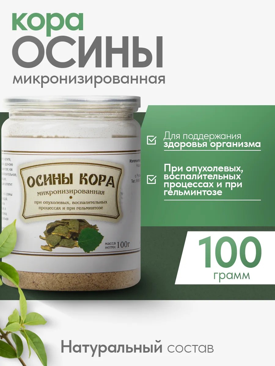 | Комплектация | Кора осины натуральная порошок измельченная молотая 100 г - 1 шт |