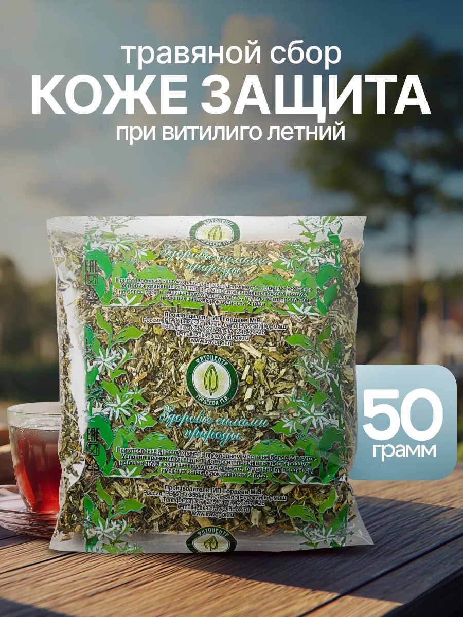 Напиток чайный Коже защита (При витилиго летний) марки Гордеев – это травяной сбор, разработанный как вспомогательное средство при витилиго, заболевании кожи, характеризующемся появлением депигментированных пятен.