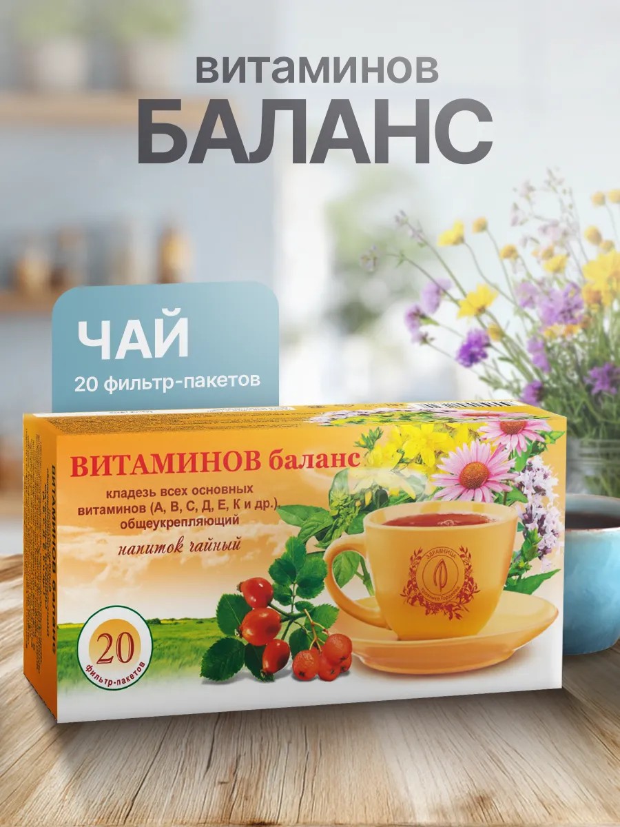 Травяной сбор Витаминов баланс Гордеева – натуральный источник витаминов (А, В, С, Д, Е, К и других), макро- и микроэлементов для взрослых и детей любого возраста. Обладая выраженным общеукрепляющим, иммуномодулирующим и антиоксидантным действием, витаминный травяной чай защищает организм от различных патогенных факторов, представляющих опасность для здоровья. Особую ценность этот сбор представляет для пациентов групп риска, которым необходима надежная противоопухолевая защита. Регулярное употребление чайного напитка на основе этого сбора – это не только способ восполнить дефицит витаминов, но и эффективная профилактика вирусных инфекций в осенне-весенний период, когда организм особенно уязвим. Благодаря уникальной комбинации растительных компонентов, Витаминов баланс помогает успешно противостоять вирусам и простудам. Травяной сбор Гордеева Витаминов баланс - это ваш верный помощник в поддержании здоровья и активного долголетия.