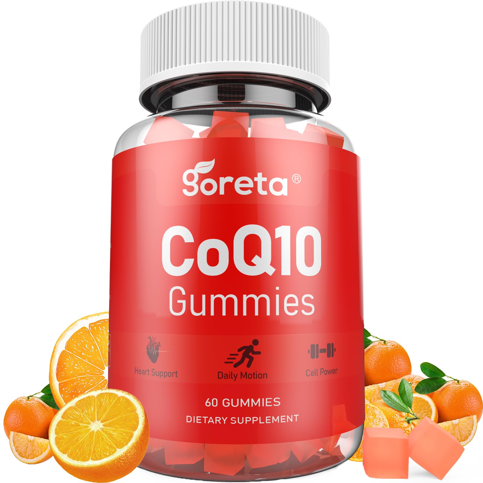 Goreta CoQ10 Gummies for Adults with Vitamin E Coenzyme Q10 250mg per Serving, Sugar-Free Chewable Gummies, Natural Orange Flavor, 60 Count