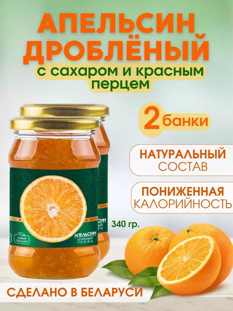 Набор Апельсин дробленый с сахаром и красным перцем пастеризованный – прекрасная альтернатива варенью. Он подходит как для подачи в качестве самостоятельного десерта к чаю, так и для дополнения к блинам и сладкой выпечке.