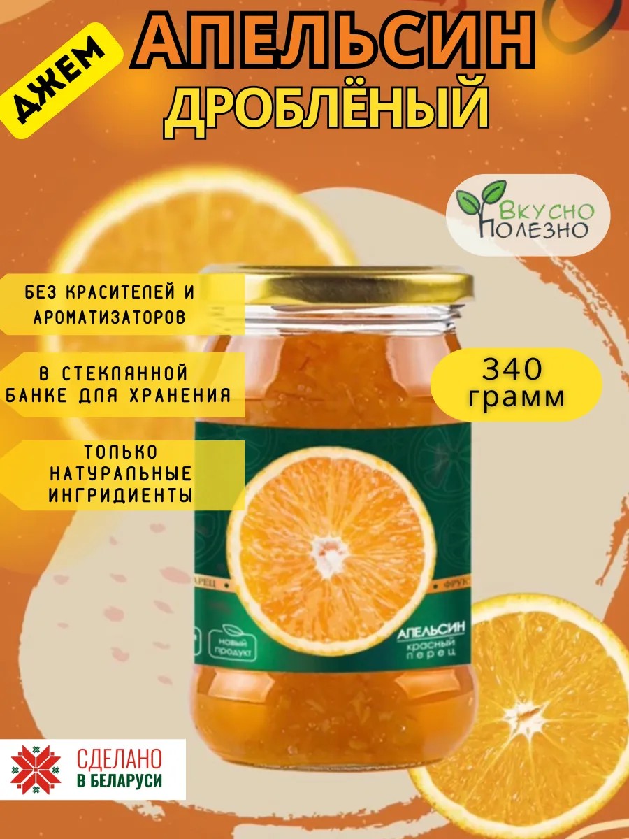 Наш джем из дробленых апельсинов с сахаром и паприкой - это яркий и сочный вкус летнего солнца, который пробудит в вас аппетит и хорошее настроение. Идеальное сочетание кислого и сладкого с ноткой легкой пикантности сладкого перца, которое станет отличным дополнением к вашему завтраку или чаепитию. Апельсины - это источник витамина С, который помогает укрепить иммунную систему и бороться с усталостью. Красный перец содержит капсаицин, который помогает улучшить пищеварение и ускорить обмен веществ, а также витамин A, который полезен для зрения. А сахар добавляет сладость и энергию, необходимую для активного начала дня. Эти низкокалорийные продукты полюбили не только взрослые, но и дети. Апельсиновый джем поставляется в стеклянной банке с закручивающейся крышкой, что обеспечивает долгое хранение и многократное использование. Наше фруктовое варенье отлично подходит для тостов, бутербродов, завтраков и десертов, также можете добавить это повидло в йогурт или оладьи, чтобы придать им необычный вкус. Используйте эти желе в качестве сладких подарков на праздник. Попробуйте наши тертые апельсины и наслаждайтесь преимуществами здорового и вкусного питания!