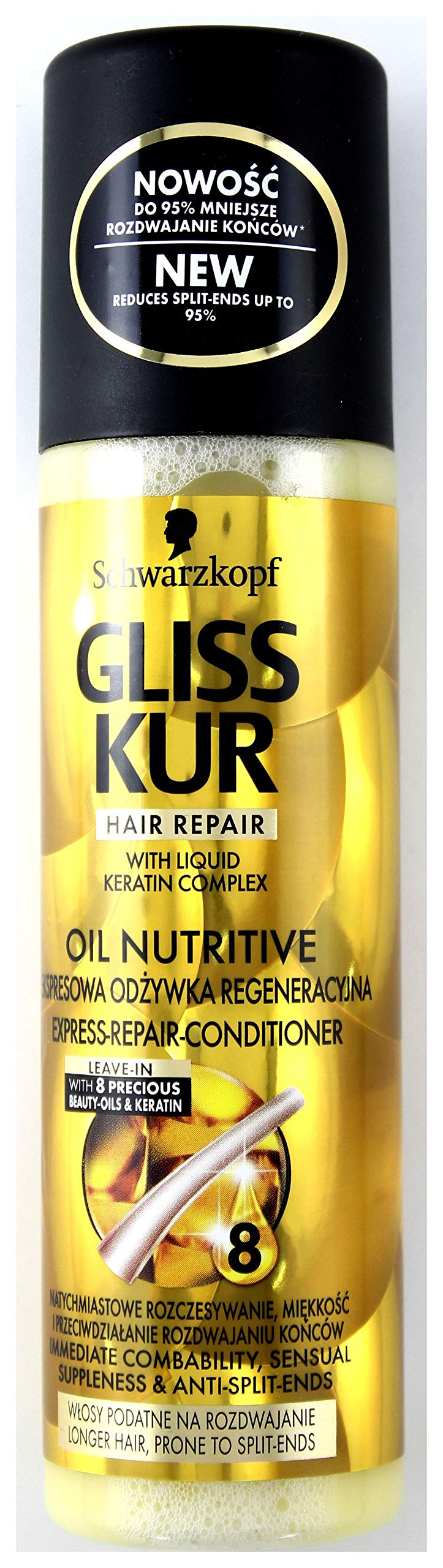 These natural oils repair damaged hair and penetrate deep into the ends, reducing split ends by up to 85 and leaving hair with a beautiful, healthy shine. This first Gliss-Kur formula contains seven nourishing oils: marula oil, argan oil, sesame and almond oil, olive oil, apricot kernel oil, and macadamia nut oil. The Gliss-Kur-Oil Nutritive range provides care for tired hair, right down to the ends.